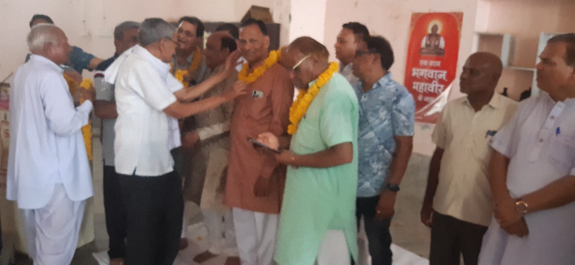 चुनाव अधिकारी महेंद्र जैन वैद एडवोकेट राजेंद्र जैन एडवोकेट चुनाव से पूर्ण साधारण सभा की बैठक आयोजित की गई जिसमें कहीं मुद्दों पर समाज की सहमति व्यक्त की