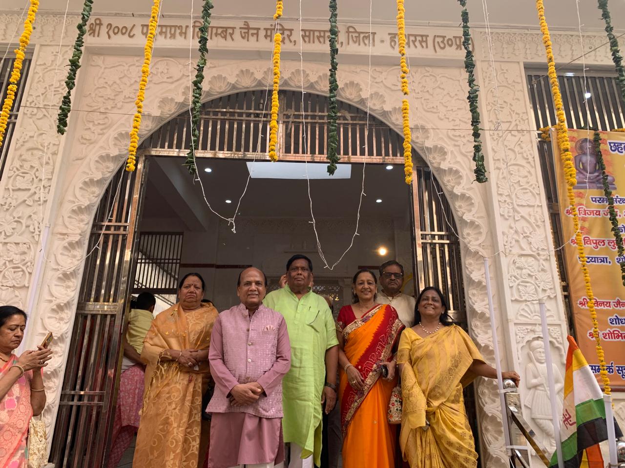 प्रसिद्ध तीर्थ उत्तरप्रदेश के अलीगढ़ के पास छहढाला के लेखक स्व पंडित दौलतराम की जन्म में स्थली सासनी (हाथरस) में दिगम्बर जैन मंदिर भगवान पद्मप्रभु के मंदिर का पुन: जीणोद्धार सिद्ध क्षेत्र गिरनार तीर्थ प्रणेता आचार्य श्री 108 निर्मल सागर जी महाराज के परम प्रभावक सुयोग्य क्षुल्लक श्री 105 समर्पण सागर जी महाराज के पावन सानिध्य में श्री दिगंबर जैन पद्मप्रभु मंदिर का पुनः जीर्णोद्वार होने के बाद नवीन वेदी में श्री जी को विराजमान किया गया कार्यक्रम में समाचार जगत जयपुर के चक्रेश जैन ने बताया कि ग्वालियर से आये प्रतिष्ठाचार्य पंडित अजीत कुमार शास्त्री, पंडित अशोक शास्त्री (दिल्ली) के सानिध्य में सभी मांगलिक कार्यक्रम स हर्ष संपन्न हुए मुख्य समारोह किरोड़ीमल कॉलेज परिसर में आयोजित किया गया, कार्यक्रम में पहले दिन झंडारोहण घटयात्रा वेदी शुद्धी, शाम को नामोकर मंत्र, सांस्कृितक कार्यक्रम हुय जिसमे सासनी महिला मंडल की और से मंगला चरण एवम सामूहिक नृत्य प्रस्तुत किया गया। कार्यक्रम में आचार्य विद्यासागर महाराज पर बच्चों ने शानदार प्रस्तुति देकर सबका मन मोह लिया तथा भजनों का शानदार कार्यक्रम हुआ, अगले दिन सुबह अभिषेक पूजन के बाद सभी पुरानी जिन प्रतिमाओं को विधि- विधान पूर्वक नवीन जिनालय में विराजमान किया गया, मंदिर के जीणोद्धार में प्रमुख भूमिका लुहाड़िया परिवार के विजय जैन सचिन जैन, (अहमदाबाद), संजय जैन (दिल्ली), राजा जैन रोहित जैन (हैदराबाद) विशाल जैन,(आगरा) अभिषेक जैन, अहमदाबाद से सरोज बाकलीवाल, कुमुद-शरद जैन, मुंबई से मीरा शाह, जयपुर से लता-अनिल बक्षी, जिनेद्र, अलोक जैन, सरोज जैन इसके अलावा आए हुए देश-विदेश के सभी परिवारजनों ने कार्यक्रम में शामिल होकर सहभागिता निभाई, सासनी के जैन समाज तथा लुहाडिया परिवार के ही सहयोग से उक्त कार्यक्रम आयोजित किया गया, क्षुल्लक श्री 105 समर्पण सागर जी महाराज ने मंदिर के भविष्य में रखरखाव में प्रतिवर्ष होने वाले खर्चो को सुचारू से चलाने के लिए लोगों से सहयोग की अपील की जिससे लुहाड़िया परिवार और अतिथियो ने सासनी समाज की ओर स्वीकार किया, कार्यक्रम में शाम को शोभायात्रा और सम्मान समारोह के बाद मंदिर जी के संरक्षक विजय कुमार जैन द्वारा ने सभी का कार्यक्रम की सफलता और सहयोग के आभार व्यक्त किया।