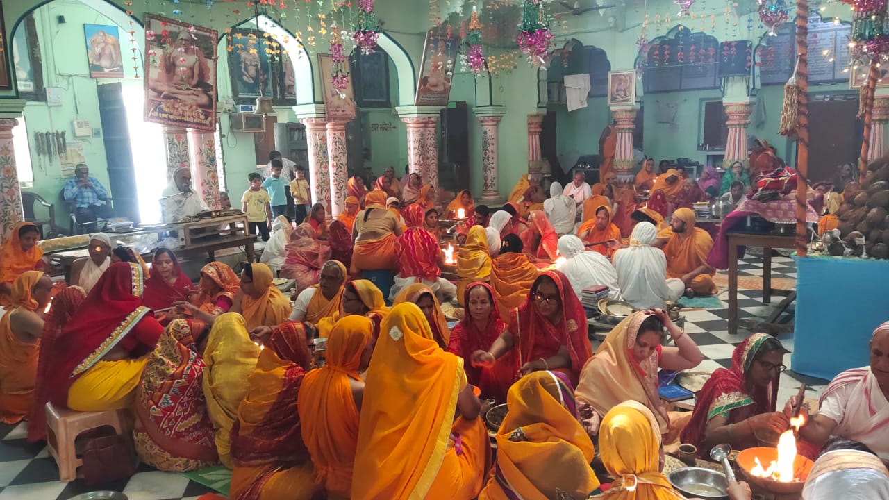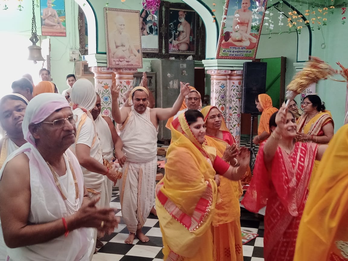 श्री दिगंबर जैन नसियां टोंक में चल रहे अष्टनिका महापर्व में सिद्धचक्र महामंडल विधान के तहत सिद्धचक्र महामंडल विधान में सोमवार को पंडित प्रमोद कुमार जी शास्त्री के सानिध्य में इंद्र एवं इंद्राणियों द्वारा 1024अर्घ्य समर्पित किए गए समाज के प्रवक्ता पवन कंटान एवं कमल सर्राफ ने बताया कि 21 मार्च से 26 मार्च तक 2024 से हुए सिद्धचक्र महामंडल विधान के तहत सोमवार को प्रातः काल श्रीजी के अभिषेक एवं शांतिधारा के पश्चात नित्य नियम की पूजा अर्चना की गई जिसमें भगवान महावीर स्वामी आदिनाथ भगवान शांतिनाथ भगवान की विशेष पूजा अर्चना की गई इस मौके पर संगीतकार की मधुर वाणी से सुरेंद्रअजमेरा, सुभाष अजमेरा ,नरेंद्र अजमेरा, महावीर पांसरोटियां ,अनिल ट्रांसपोर्ट , पन्नालाल जूनिया, प्रदीप नगर वाले ,नेमीचंद बनेढा और इंद्र एवं इंद्राणियों ने जमकर भक्ति नृत्य किया ।मंगलवार को विधान का समापन हुआ विश्व शांति के लिए महायज्ञ में आहुतियां दी गई ,पंडित प्रमोद जी शास्त्री ने बताया की जीवन के अंदर जब भी प्रतिकूल परिस्थितियां आती हे तो हमारा जो कर्म किया है वह उदय में आता है अगर हमने अच्छा कर्म किया है तो वह पुण्य रूप में आएगा और बुरा कार्य किया है तो वह पाप रूप में आएगा इसलिए अपने जीवन में आर्त ध्यान को छोड़कर धर्म ध्यान में मन को लगाना चाहिए कार्यक्रम में महुआ से आये केशव एण्ड पार्टी ने बधाई गीत गाकर कार्यक्रम का समापन किया अमीरगंज समाज कमेटी के द्वारा पुण्यार्जक परिवार का और पंडित प्रमोद जी शास्त्री का सम्मान किया गया इस मौके पर भागचंद फूलेता, विमल बरवास ,राजू सर्राफ ,धर्म दाखिया, कमल सराफ मौजूद थे।