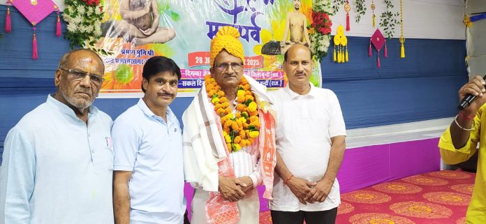 दिगंबर जैन समाज के द्वारा अध्यापक अशोक जैन चैप्टर का सरकारी सेवा से मुक्त होने पर भव्य स्वागत सम्मान कर बधाई दी