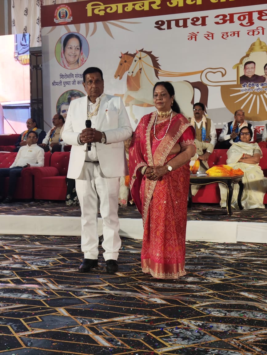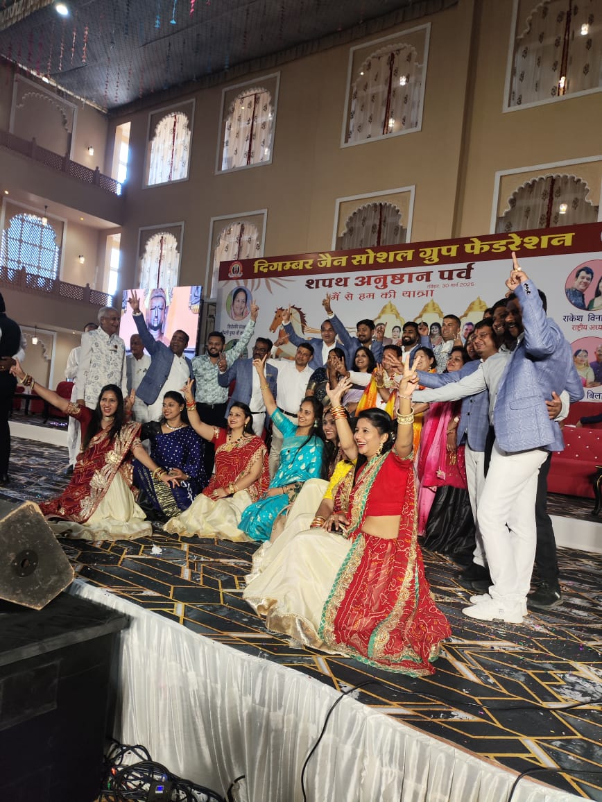 दिगंबर जैन सोशल ग्रुप फेडरेशन का शपथ अनुष्ठान पर्व आज दिनांक 30 मार्च रविवार को श्री राजाराम रिसोर्ट उज्जैन में प्रदेश भर के पदाधिकारियों की महंती उपस्थिति में सानंद संपन्न हुआ। फेडरेशन के राष्ट्रीय मिडिया प्रभारी राजेश जैन दद्दू ने बताया कि कार्यक्रम में प्रदेश के यशस्वी मुख्यमंत्री डॉ मोहन यादव ,उज्जैन आलोट के सांसद अनिल जी फिरोजिया उज्जैन उत्तर के विधायक अनिल जैन कालूखेड़ा एवं फेडरेशन सदस्यों की गरिमामय में उपस्थिति ने कार्यक्रम में चार चांद लगा दिए। समारोह की प्रमुख अतिथि फेडरेशन कि शिरोमणि संरक्षिका पुष्पाजी कासलीवाल समारोह में राष्ट्रीय अध्यक्ष राकेश विनायका , राष्ट्रीय महासचिव श्री विपुल बांझल राष्ट्रीय कोषाध्यक्ष अतुल बिलाला अमित कासलीवाल सुशील पांड्या सहित अनेक वरिष्ठ पदाधिकारी उपस्थित हुए।कार्यक्रम की मुख्य अतिथि श्रीमती स्नेहलता श्रवण सोगानी, दीप प्रज्ज्वलन कर्ता डॉ.सी.के. ललिता कासलीवाल थे। कार्यक्रम का संचालन जम्बु धवल एवं प्रियंका विनायका ने किया। स्वागत भाषण उज्जैनी मेन ग्रुप के अध्यक्ष प्रदीप पांड्या ने दिया। शपथ अधिकारी श्री हंसमुख जी गांधी ने फेडरेशन के लगभग 400 राष्ट्रीय पदाधिकारियों को शपथ दिलवाई, जिसमें प्रमुख रूप से हमारे उज्जैन के देवेंद्र कांसल को राष्ट्रीय अध्यक्ष, विनय जैन जबलपुर को राष्ट्रीय महासचिव एवं उज्जैन के हमारे युवा साथी श्री अश्विन कासलीवाल को राष्ट्रीय कोषाध्यक्ष एवं नवीन जैन को उज्जैन रीजन अध्यक्ष पद की शपथ दिलवाई। इसके साथ ही हमारे ग्रुप के साथी जंबु नीता धवल , वीरबाला कासलीवाल स्नेहलत सोगानी , ललिता कासलीवाल ,प्रदीप झंझरी , नितिन डोसी, दिलीप सोगानी संजय जैन दादा, विपिन पाटनी , प्रशांत जैन एवं आशीष कासलीवाल ने भी शपथ ग्रहण की।