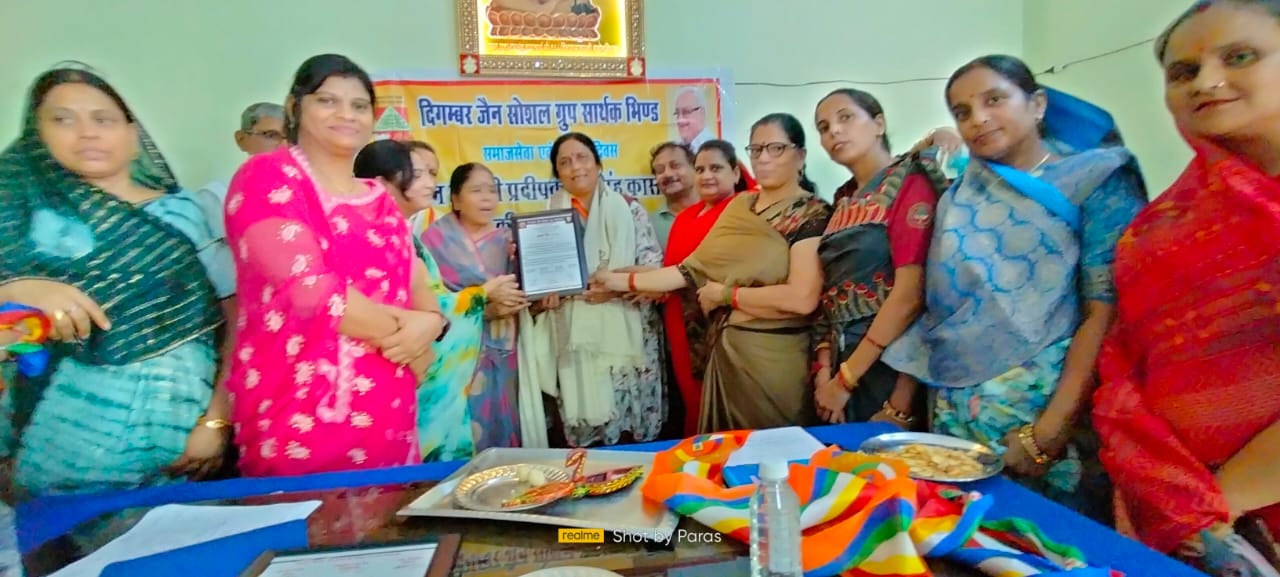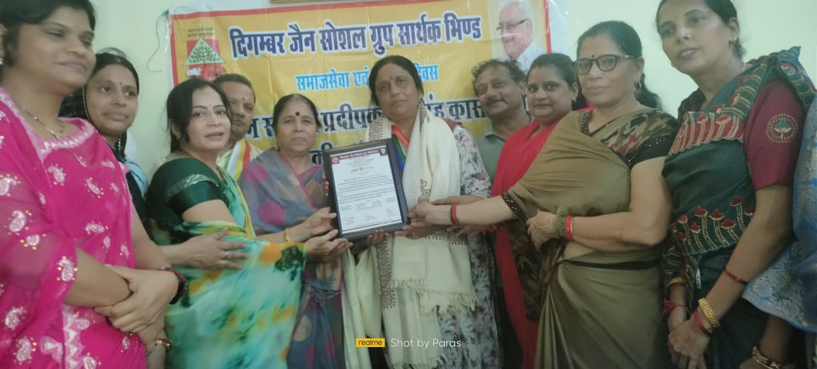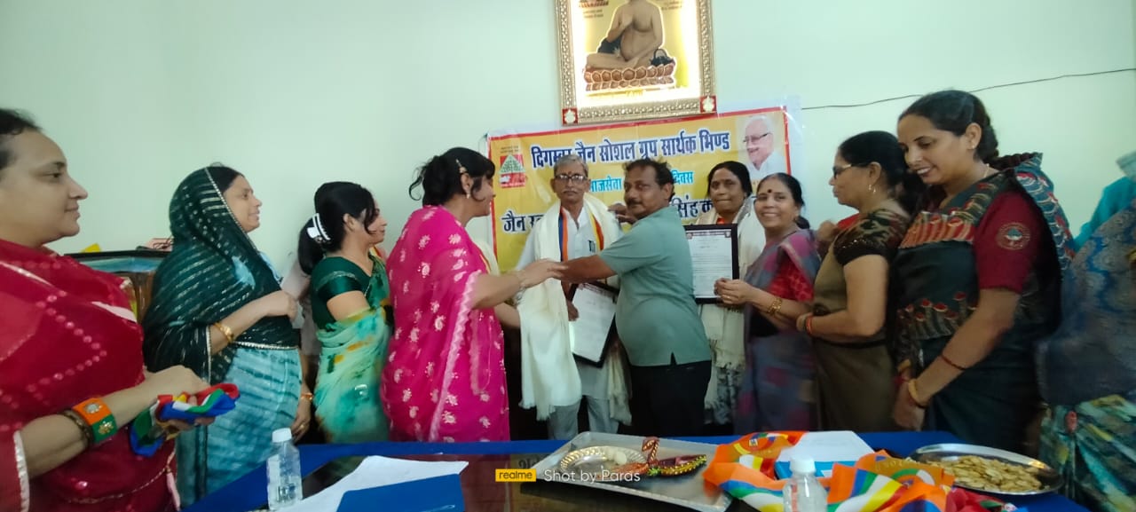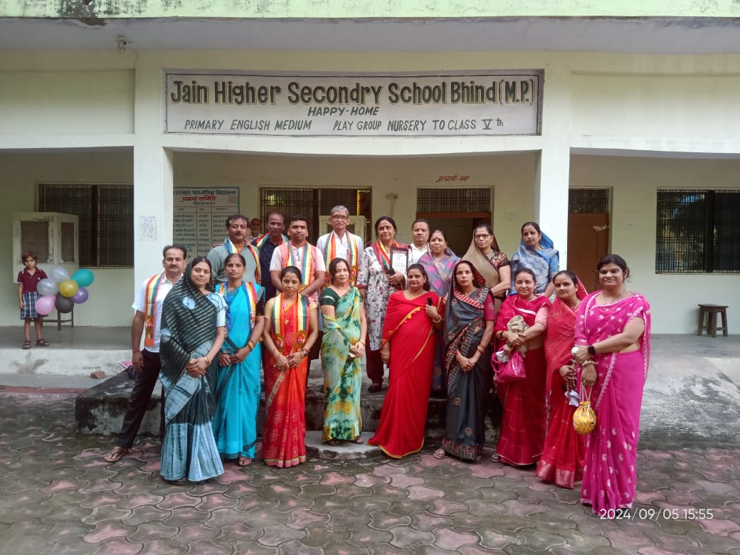 शिक्षक दिवस पर शिक्षा सम्मान परंपरा का निर्वाह करते हुए ग्रुप के द्वारा वरिष्ठ समाज सेविका शिक्षा के क्षेत्र में अपना उत्कृष्ट योगदान देने वाली डिग्री कॉलेज की प्राचार्य अनीता जैन एवं विद्यालय के प्राचार्य राकेश कुमार जैन को ग्रुप द्वारा तिलक लगाकर साल पट्टिका एवं सम्मान पत्र देकर सम्मानित किया गया, इस अवसर पर विद्यालय स्टाफ के अलावा जैन समाज विद्यालय के सदस्य दिगंबर जैन सोशल ग्रुप सार्थक की अध्यक्ष स्नेहलता जैन, मंत्री मोती रानी जैन, कोषाध्यक्ष मंजू जैन सहित साधना जैन रूबी जैन रिंकी जैन मंजू जैन प्रीति जैन मधु जैन रेनू जैन अनु जैन रानू जैन जैन आदि लोग उपस्थित रही