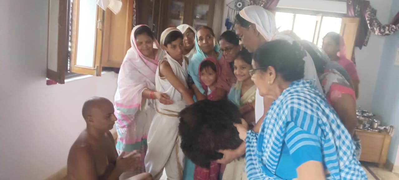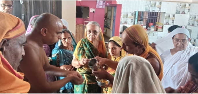 समाज अध्यक्ष श्री मान सुधीर जी जैन के घर पर आहार चर्या संपन्न हुई मुनिश्री के चरणों में सकल दिगंबर जैन समाज ने श्रुत पंचमी महोत्सव कार्यक्रम के लिए श्रीफल भेंट किये