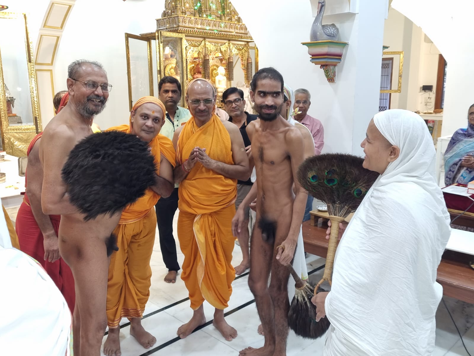 प्रतिकृतियां हूबहू स्थापित हैं। ऊपर की मंजिल पर गुफा में श्रवणबेलगोला की तरह ही अंतिम श्रुतकेवली आचार्य श्री भद्रबाहु जी के चरण स्थापित हैं। यहां विराजमाान गणिनी आर्यिका आर्षमति, अमोघमति, अर्पणमति व अंशमति माताजी संघ ने मुनियों की वंदना कर धर्मचर्चा की। सभी ने पूरे मंदिर परिसर, तथा छत पर भव्य त्रय शिखर के दर्शन कर अत्यंत प्रसन्नता व्यक्त की। समस्त समाज और महिला मंडल ने मुनियों को नमन-वंदन किया। मुनिद्वय सभी को आशीर्वाद