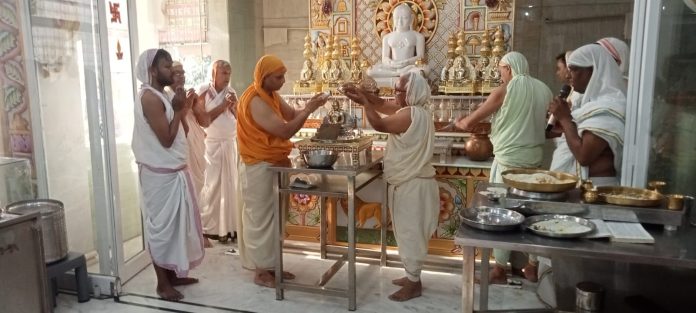इंदौर। भगवान आदिनाथ जन्म कल्याणक से महावीर जयंती पर निरंतर 20 दिनों तक पदयात्रा के दौरान शुक्रवार सुबह अंतर्मुखी मुनिश्री पूज्यसागर जी महाराज ने विहार करते हुए तुलसीनगर स्थित दिगंबर जैन मंदिर में मंगल प्रवेश किया। फेडरेशन के के मिडिया प्रभारी राजेश जैन दद्दू ने बताया कि परम पूज्य मुनिश्री का समाजबंधुओं ने पाद प्रक्षालन कर अगवानी की। जयकारों से मंदिर परिसर गुंजायमान हो गया। यहां भगवान के दर्शन कर अंतर्मुखी मुनिश्री पूज्यसागर जी के साथ समाज बंधुओं ने बैंडबाजों के साथ महालक्ष्मीनगर की ओर से प्रस्थान किया। इस दौरान पूरे यात्रा मार्ग में मुनिश्री का जगह-जगह पर पाद प्रक्षालन किया गया। समाजबंधु गुरुवर के जयकारे लगाते हुए चल रहे थे। महालक्ष्मीनगर पहुंचकर मुनिश्री के सानिध्य में भगवान आदिनाथ जी को पालकी में विराजित कर क्षेत्र में पालकी यात्रा निकाली गई। क्षेत्र में भ्रमण करते हुए भगवान पालकी और मुनिश्री पूज्यसागर जी महाराज की आरती और पाद प्रक्षालन के लिए समाज बंधुओं में होड़ लगी रही। पालकी यात्रा का समापन विभिन्न मार्गों से होते हुए वापस महालक्ष्मीनगर दिगंबर जैन मंदिर में हुआ। यहां पर मुनिश्री के सानिध्य में जितेंद्रकुमार जैन द्वारा ध्वजारोहण किया गया। ध्वजारोहण के पुण्यार्जक जितेंद्रकुमार जैन और दिलीप पाटनी थे। इस अवसर पर दिलीप पाटनी, अनिल मोदी, राकेश विनायगा, आरके जैन, राजेश जैन, अनिल जैन सहित बड़ी संख्या में समाज श्रेष्ठी मौजूद रहे। इस अवसर पर