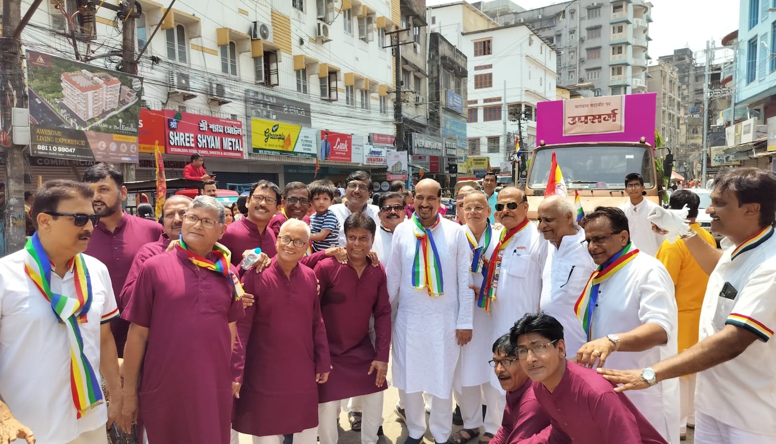गुवाहाटी : जीओ और जीने दो का संदेश देने वाले जैनधर्म के 24वें तीर्थंकर भगवान महावीर के 2623वें जन्म कल्याणक एवं 2550 वें निर्वाण महोत्सव के उपलक्ष्य पर धर्म प्रभावना हेतु रविवार को फैंन्सी बाजार स्थित श्री दिगम्बर जैन(बडा़)मंदिर से प्रातः8:45 बजे श्री दिगम्बर जैन पंचायत एवं ओसवाल जैन समाज के चारों घटकों के तत्वावधान में भव्यातिभव्य विशाल शोभायात्रा निकाली गई। शोभायात्रा नगर के प्रमुख मार्गों से होती हुई वापस एमएस रोड स्थित भगवान महावीर धर्मस्थल पहुँची,जहां महावीर प्रसाद पाटनी एवं विजय कुमार गंगवाल के संयोजन में अन्य कार्यक्रम आयोजित हुए। इस शोभायात्रा में पुरुष वर्ग श्वेत वस्त्र एवं महिलाएं केसरिया परिधान में सम्मिलित हुई। शोभायात्रा मे पावापुरी अहिंसा रथ को भी सम्मिलित किया गया तथा भगवान महावीर की जीवंत झलकियों को सुसज्जित किया गया। इस अवसर पर दिगंबर जैन विद्यालय के बच्चों ने भी भाग लिया। प्रचार प्रसार के मुख्य संयोजक ओम प्रकाश सेठी एवं सहसंयोजक सुनील कुमार सेठी ने बताया कि शोभायात्रा में दिगंबर जैन पंचायत के अध्यक्ष महावीर जैन (गंगवाल), मंत्री वीरेंद्र कुमार सरावगी, बसंत सुराणा, अशोक छाबड़ा के अलावा काफी संख्या में सकल जैंन समाज के सदस्य उपस्थित थे।इस अवसर पर एटी रोड स्थित महावीर भवन धर्म स्थल में समाज द्वारा सामूहिक गोठ का आयोजन किया गया। जिसमें बड़ी संख्या में समाज के लोगों ने भाग लिया। रामचंद्र सेठी आरती संयोजक ने बताया कि कार्यक्रम का समापन संध्या- कालीन श्री जी की आरती के साथ हुआ। इस दो दिवसीय महोत्सव को सफलतापूर्वक आयोजन कराने में श्री दिगंबर जैन युथ फेडरेशन, श्री दिगंबर जैन महिला समिति के अलावा समाज के सभी सदस्यों का सराहनीय सहयोग रहा।।