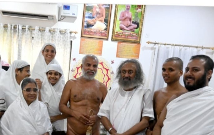 गुवाहाटी : फैंसीबरजा के भगवान महावीर धर्म स्थल में शनिवार को आध्यात्मिक गुरु श्री रवि शंकर ने आचार्य श्री प्रमुख सागर महाराज के दशर्नाथ पधार कर उनसे अध्यात्मिक विषय पर वार्तालाप की। इस अवसर पर पंचायत के अध्यक्ष महावीर जैन ने उनके आगमन पर फूलोंम- गमछा पहना कर स्वागत किया। तत्पश्चात आध्यात्मिक गुरु ने कहा की दिगंबर संत संपूर्णता से धनी होते हैं। उनको वाहे से किसी चीज की आवश्यकता नहीं है। यह अपने आप में परिपूर्ण है। आचार्य श्री प्रमुख महाराज ने कहा की ऋषि- मुनि मिलते रहेंगे तो हमारी भारतीय संस्कृति बची रहेगी। उन्होंने कहा की रवि शंकर जी एक ऐसे गुरु है जिन्होंने पूरे विश्व को ध्यान के माध्यम से अरोता – आगजता और अहंकार के दंड – फंड से बचा दिया है।आज इस मानवता को संतो-भगवंतो के मंगल सानिध्य से अपने जीवन का कल्याण अवश्य करना चाहिए। आचार्य श्री ने गुरु जी की कलाई में रक्षा सूत्र धागा बांध कर अपना मंगल आशीर्वाद प्रदान किया ।उन्होंने गुरु जी को सूर्य पहाड़ की जानकारी देते हुए कहा कि यह एक ऐसा संगम स्थान है जहा हिंदुत्व के शिव, बुध के बौध,व जैंनियौं के आदिनाथ तीनों का समावेश है। उन्होंने आध्यात्मिक गुरु को आगामी 26 से 31 जनवरी तक गुवाहाटी मे आयोजित होने वाले पंच- कल्याणक महोत्सव में आने का निमंत्रण भी दिया। यह जानकारी प्रचार प्रसार के सहसंयोजक सुनील कुमार सेठी द्वारा दि गई है।