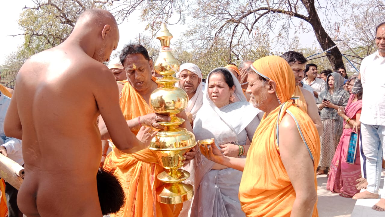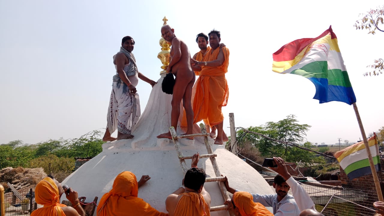 भिंड/ गाणाचार्य विराग सागर जी महाराज के परम शिष्य मेडिटेशन गुरु उपाध्याय विहसन्त सागर जी महाराज मुनि श्री विश्वसाम्य सागर जी महाराज के ससंग सानिध्य में अटेर क्षेत्र के ग्राम दुल्हागन में श्री 1008 सुपार्सनाथ दिगंबर जैन मंदिर जो की 750 वर्ष पुराना प्राचीन जैन मंदिर है उस मंदिर में 19 मार्च से 20 मार्च 2024 तक विधान एवं शिखर पर कलशारोहण कार्यक्रम का आयोजन किया गया जिस पर 20 मार्च दिन बुधवार को दोपहर 1 बजे शिखर पर कलशारोहण स्थापित करने का सौभाग्य अशोक जैन ऋषभ जैन दिल्ली ने प्राप्त किया एवं प्रतिष्ठाचार्य संदीप शास्त्री ने मुनिराज के ससंग सानिध्य में विधि विधान से शिखर पर कलसा रोहन कराया।