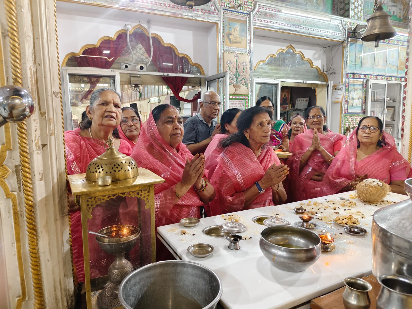 दुर्गापुरा दिगंबर जैन मंदिर में नमोकार किट्टी ग्रुप दुर्गापुरा द्वारा भगवान चन्द्र प्रभ का विधान का भव्य आयोजन किया गया, कार्यक्रम में आयोजिका श्रीमति सुमति अजमेरा ने बताया कि इस विधान में ग्रुप की सभी सदस्याओं ने बडे भक्तिभाव से भाग लिया,सभी सदस्याओं ने गुलाबी ड्रेसकोड परिधान पहनकर विधान में पूजा अर्चना कर पुण्यार्जन प्राप्त किया,सभी ने बडे मनोभाव से अर्घ्य समर्पित कर बीच-बीच में भजन भी गाये,विधान समाप्ति पर सभी ने सामुहिक आरती की, उक्त विधान में श्रीमति लक्ष्मी जैन,ललिता सोगाणी,मनोरमा चांदवाड, आशा पाटनी,बिमला पांड्या आशा गर्ग, शकुन्तला बाकलीवाल, श्रीमति रांवका,मुन्नादेवी गोधा,मुन्ना देवी पहाडीवाली,निर्मला सेठी,कुमुदजी गोधा , डां शान्ति जैन ” मणि” एवं प्रेमलताजी आदि ने भक्ति भाव से पूजा अर्चना कर सुख समृद्धि एवं खुशहाली की कामना करते हुए अपने को धन्य किया।