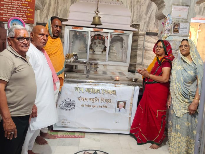 फागी कस्बे के श्री चंद्रप्रभ दिगम्बर जैन नसियां मंदिर जी में स्व.श्री निर्मल कुमार जी सेठी की पंचम पुण्यतिथि 27 अप्रैल 2026 को जैन धरोहर दिवस के रूप में मनाकर विनयांजलि सभा का किया आयोजन