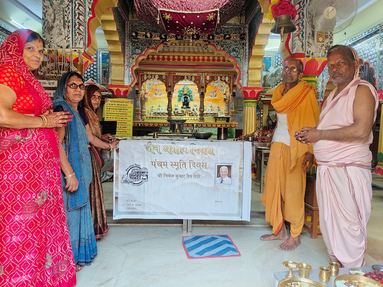 फागी कस्बे के श्री पार्श्वनाथ दिगम्बर जैन बिचला मंदिर में स्व.श्री निर्मल कुमार जी सेठी की पंचम पुण्यतिथि 27 अप्रैल 2026 को जैन धरोहर दिवस के रूप में मनाकर विनयांजलि सभा का किया आयोजन