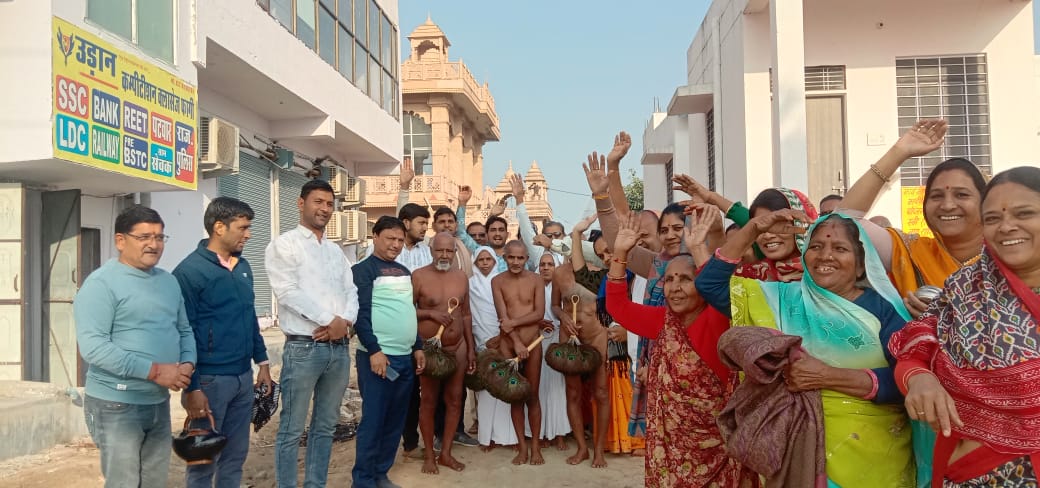 फागी कस्बे में आचार्य वरदत्त सागर जी महाराज के सुयोग्य शिष्य मुनि महिमा सागर महाराज, मुनि दिव्य सेन महाराज, मुनि परम सागर महाराज तथा आर्यिका सुग्रीवमति माताजी, आर्यिका सुभद्रा मति माताजी, तथा क्षुल्लिका सम्मेद श्री माताजी सहित छह पिच्छिका धारी दिगम्बर जैन संतों का भव्य मंगल प्रवेश हुआ कार्यक्रम में जैन महासभा के प्रतिनिधि राजाबाबू गोधा ने शिरकत करते हुए कहा कि उक्त संघ बाडा पदमपुरा में चातुर्मास सम्पन्न करके विभिन्न कस्बों एवं गांवों में होता हुआ आज फागी कस्बे की सीमा पर पहुंचा जहां पर फागी सकल जैन ने अग्रवाल समाज के अध्यक्ष महावीर झंडा एवं मंत्री कमलेश चोधरी की अगुवाई में बैन्ड बाजों के द्वारा जयकारों के साथ संघ की भव्य आगवानी की कार्यक्रम चंद्रपुरी दिगम्बर जैन मंदिर के अध्यक्ष सत्येन्द्र झंडा ने बताया कि संघ ने चंद्रपुरी दिगम्बर जैन मंदिर में दर्शन करने के बाद नगर भ्रमण करते हुए जयकारों के साथ कस्बे में मंगल प्रवेश किया, कार्यक्रम में जगह जगह समाज ने अपने- अपने आवासों पर रंगोलियां बना रखी थी जहां पर संघ का जगह -जगह पाद प्रक्षालन कर आरती की गई। कार्यक्रम में अनिल जैन कठमाना ने अवगत कराया कि उक्त संघ आदिनाथ जिनालय,बीचला मंदिर, मुनि सुव्रतनाथ मंदिर के दर्शन करते हुए पार्श्वनाथ चैत्याल्य पर पहुंचा जहां पर सारे सकल जैन समाज की महिलाओं ने संघ की मंगल कलशों के द्वारा भव्य आगवानी की तथा आरती करने के बाद संघ को संत भवन में ठहराया, कार्यक्रम में संघस्थ ब्रह्मचारिणी शैला दीदी के द्वारा ज्ञात हुआ कि मुनि महिमा सागर जी महाराज आठ वर्ष से एक दिन उपवास एक दिन आहार करते आ रहे हैं यह उनकी तपस्या का फल है, कार्यक्रम में संघस्थ महावीर पाटनी कीर्तिनगर जयपुर निवासी ने अवगत कि उक्त संघ चकवाड़ा , धमाणा, मौजमाबाद, दूदू होता हुआ विभिन्न शहरों कस्बों में होता हुआ महाराष्ट्र के प्रसिद्ध तीर्थ स्थल मा़गीतुंगी पर पहुंचेगा, कार्यक्रम में राजाबाबू गोधा ने अवगत कि पंडित संतोष बजाज ने मंगलाचरण कर कार्यक्रम की शुरुआत की बाद में मुनि श्री ने मंगलमय उदबोद्बन देकर सभी श्रृद्धालुओं को लाभान्वित किया, पारस नला ने अवगत की कार्यक्रम में समाज सेवी डाक्टर अरूण जैन जयपुर,मोहन झंडा, कपूर चंद नला,मुनि भक्त सोहनलाल झंडा,केलास कासलीवाल,अग्रवाल समाज के अध्यक्ष महावीर झंडा, पंडित संतोष बजाज, पंडित केलास कडीला,सोभाग सिंघल, फागी पंचायत समिति के पूर्व प्रधान सुकुमार झंडा, ओमप्रकाश कासलीवाल, धर्म चंद पीपलू,अनिल कठमाना, सुरेंद्र पंसारी, पवन कागला,महेंद्र बावड़ी, टीकम गिंदोढी,अशोक कागला, त्रिलोक पीपलू,पवन गंगवाल, सुनील गंगवाल,राजेश छाबड़ा,पार्षद महेश झंडा, मीतेश लदाना,राजकुमार कागला, राजकुमार नला,संतोष बजा