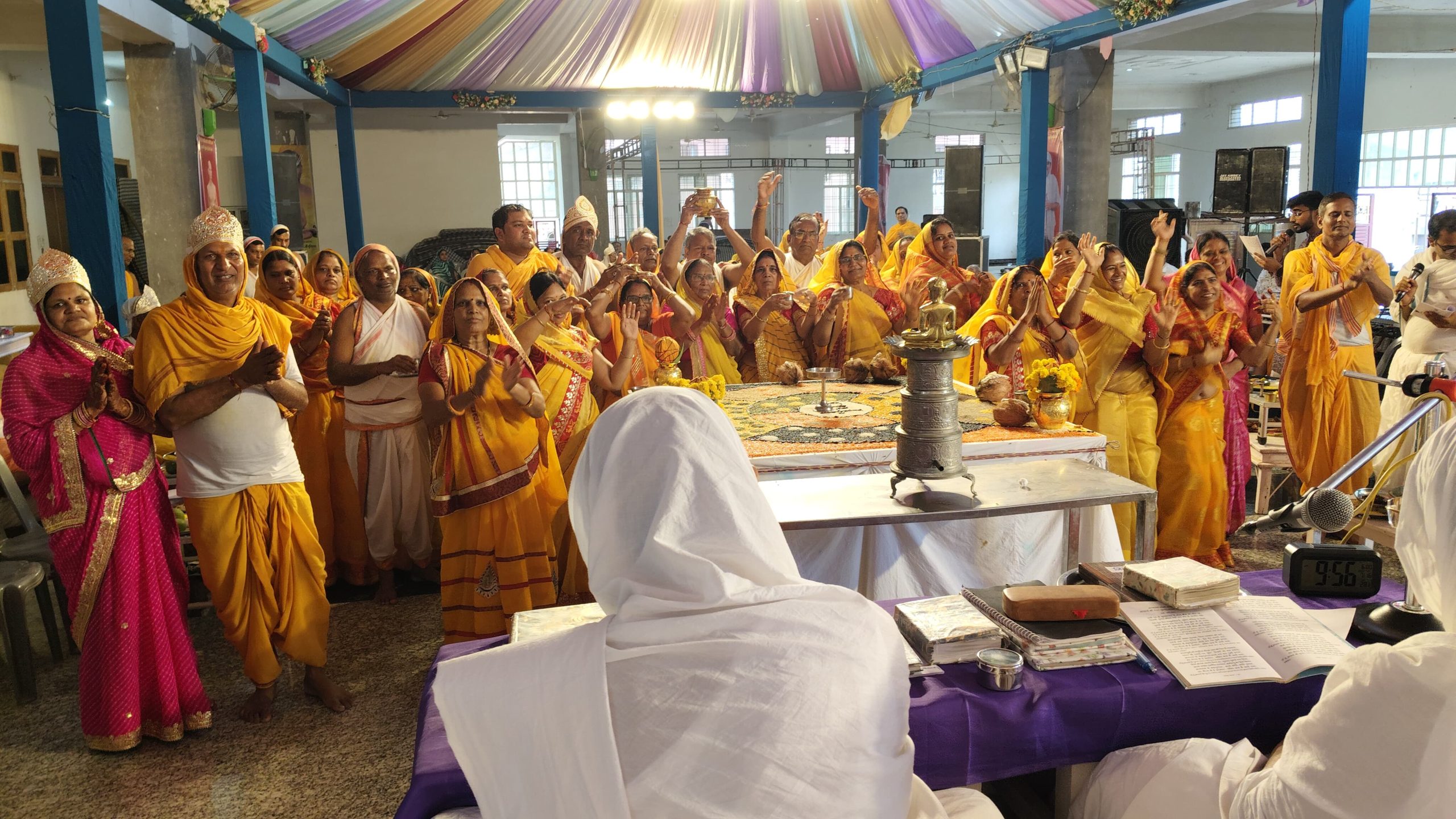 फागी कस्बे में विराजमान आर्यिका सुरम्यमति माताजी स संघ के पावन सानिध्य में 16 जुलाई 2025को सकल दिगंबर जैन समाज फागी द्वारा आचार्य श्री 108 सुंदर सागर जी महाराज का 30 वां संयम दीक्षा दिवस ब्रह्मचारिणी कनक दीदी के दिशा निर्देश में विधानाचार्य मनीष गोधा के द्वारा विभिन्न मंत्रोच्चारणों के बीच बड़ी धूम धाम से मनाया गया इसी कड़ी में जैन महासभा के राजाबाबू गोधा ने बताया कि दिनांक 16/7/2025 को प्रातः अभिषेक, शांति धारा व अष्टद्वव्यों से पूजा बाद आचार्य 108 श्री सुंदर सागर जी महाराज की साज ,बाज संगीत के द्वारा नाचते गाते हुए पूजा की गई, कार्यक्रम में मंदिर समिति के कमलेश चोधरी ने बताया कि 108 श्री सुंदर सागर महाराज के विधान में 101 पूज्यार्थियों द्वारा 66 अर्घ चढ़ाये गये कार्यक्रम में चातुर्मास समिति के मितेश लदाना ने बताया कि आचार्य सुंदर सागर जी महाराज के विधान बाद कार्यक्रम को मिनी पंचकल्याण के रूप में मनाया गया जिसमें माता-पिता नवरतन कठमाणा ,
