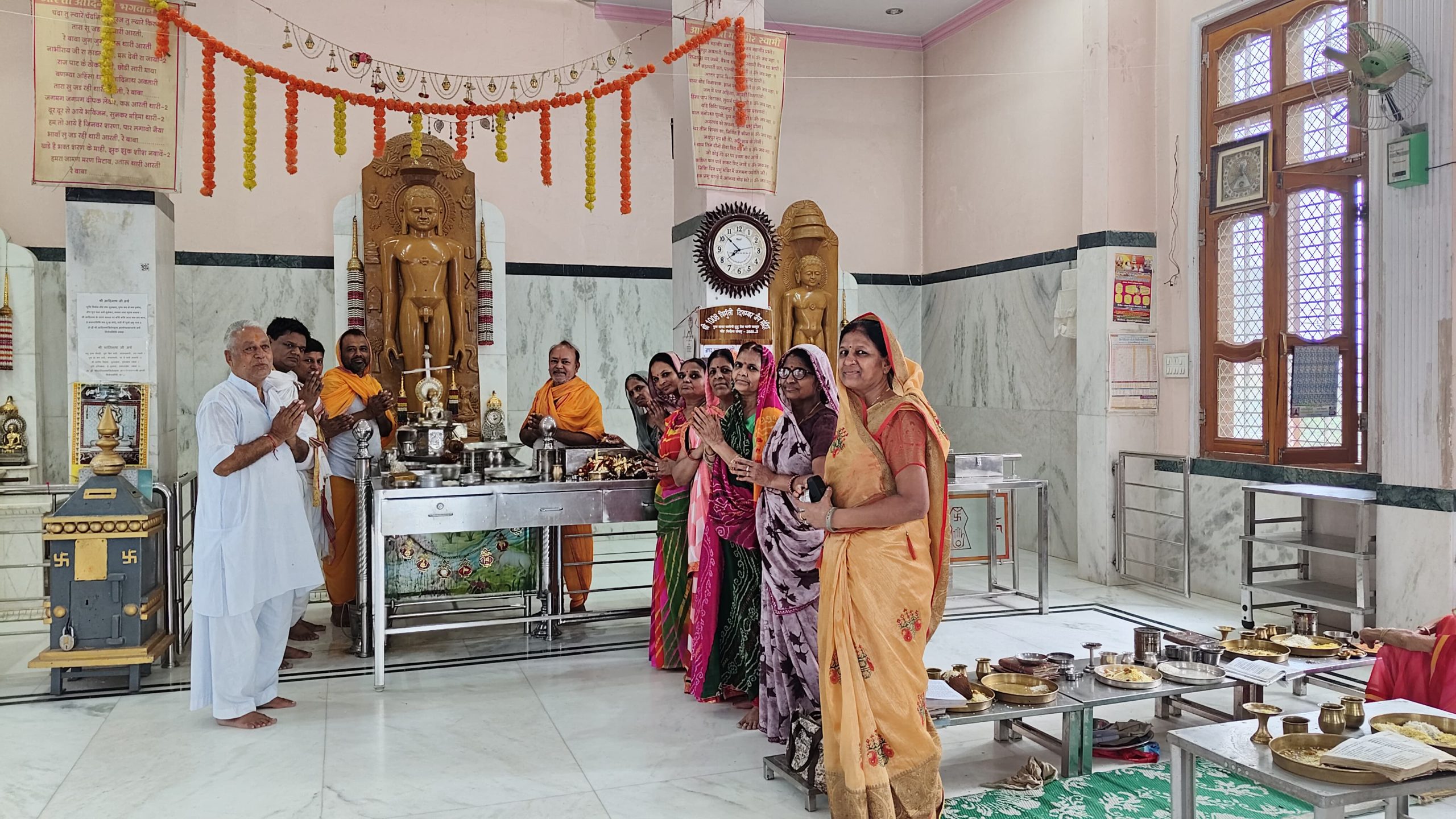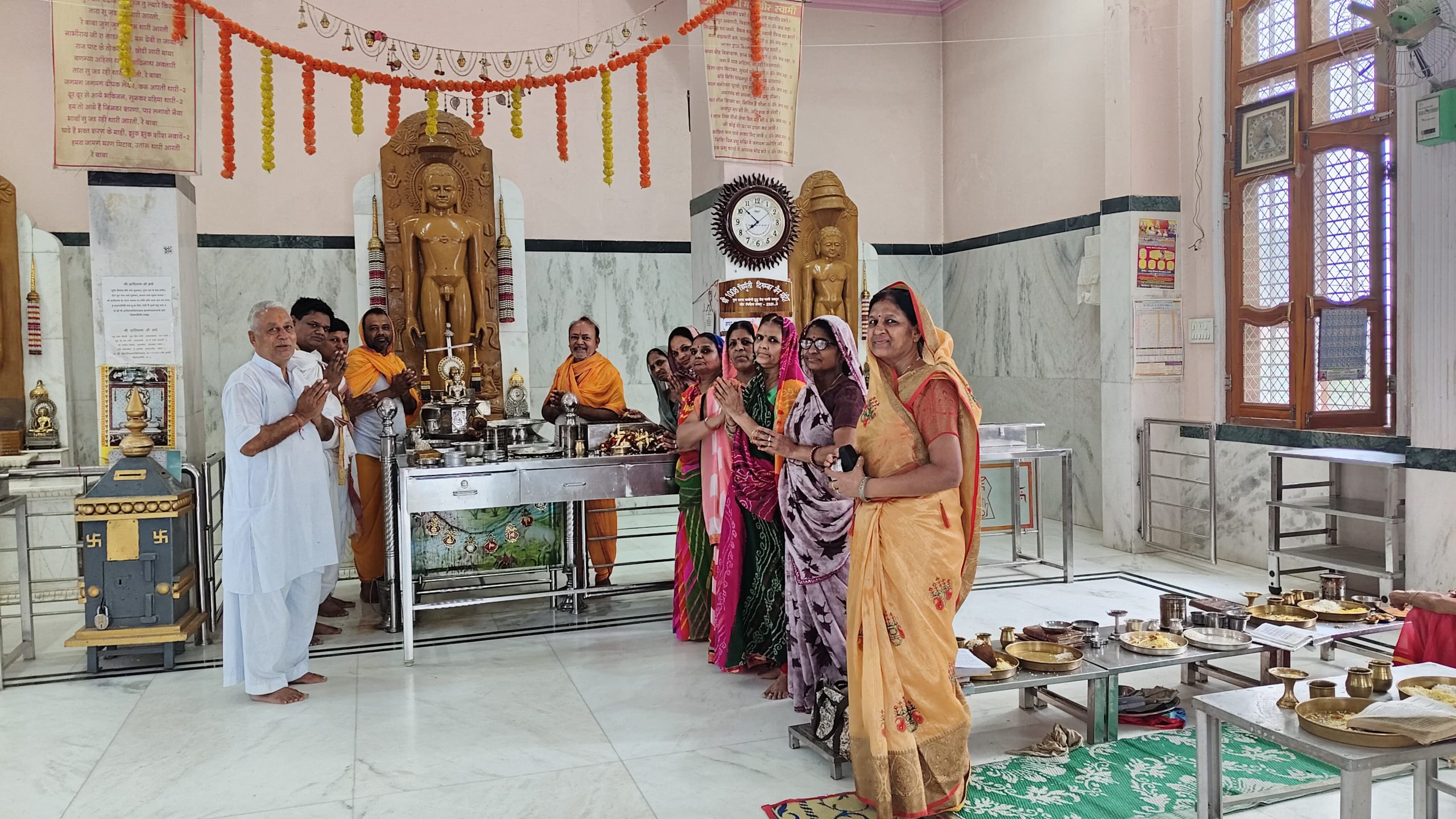 फागी कस्बे सहित परिक्षेत्र के चकवाडा, चोरू,नारेड़ा,मंडावरी, मेहंदवास, निमेडा, लसाडिया तथा लदाना सहित कस्बे के जिनालयों मे जैन धर्म के इक्कीसवें तीर्थंकर भगवान नमिनाथ का जन्म व तप कल्याणक महोत्सव हर्षोल्लास पूर्वक मनाया कार्यक्रम में जैन महासभा के प्रतिनिधि राजाबाबू गोधा ने बताया कि कस्बे के चकवाड़ा रोड पर स्थित त्रिमूर्ति जिनालय में प्रातः श्री जी का अभिषेक करने के बाद समाज की ओर से सामूहिक शांतिधारा कर अष्टद्रव्यों से पूजा अर्चना कर विभिन्न तीर्थंकरों के अर्घ्य अर्पित किए कार्यक्रम में आचार्य वर्धमान सागर महाराज, आचार्य इन्द्रनंदी जी महाराज,आर्यिका श्रुतमति माताजी, सुबोध मति माताजी, एवं जिनवाणी माता केअर्घ्य अर्पित करने के बाद जैन धर्म के इक्कीसवें तीर्थंकर नमिनाथ भगवान का जन्म -तप कल्याणक महोत्सव का अर्घ्य चढ़ाकर विश्व में सुख समृद्धि और खुशहाली की कामना की गई,कार्यक्रम में महिला मंडल की मुन्ना कासलीवाल एवं शिमला नला ने बताया कि नमिनाथ भगवान के पिता का नाम विजय और माता का नाम सुभद्रा था इनका जन्म मिथिला में हुआ था इनका प्रतीक चिन्ह नीलकमल है, समाज की निर्मला बजाज एवं पारसी कागला ने बताया कि नमिनाथ भगवान ने लोगों को सम्यक ज्ञान प्राप्त करने और आत्मा की शुद्धि पर ध्यान करने के लिए प्रोत्साहित किया, उन्होंने संस्कारिक दुखों से मुक्ति पाने के लिए अहिंसा, आत्म नियंत्रण और कर्मों के नाश पर जोर दिया। कार्यक्रम में समाज सेवी रामस्वरूप जैन मंडावरा, रामस्वरूप मोदी, भागचंद कासलीवाल, सुरेंद्र पंसारी, पदम बजाज, सुरेश मंडावरा ,कमलेश मंडावरा, मुकेश नला,एडवोकेट विकास नला, पवन मोदी, तथा राजाबाबू गोधा एवं महिला मंडल की विमला मोदी, मुन्ना कासलीवाल, शिमला नला, सुनिता पंसारी,पारसी कागला, निर्मला बजाज, मंजू मड़ावरा ,मैना कलवाड़ा, संजू नला ,प्रीति कठमाणा, त्रिशला नला सहित सभी श्रावक श्राविकाएं मोजूद थे।