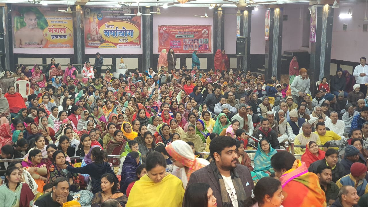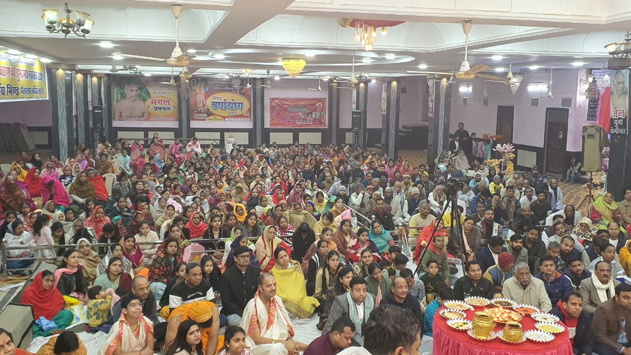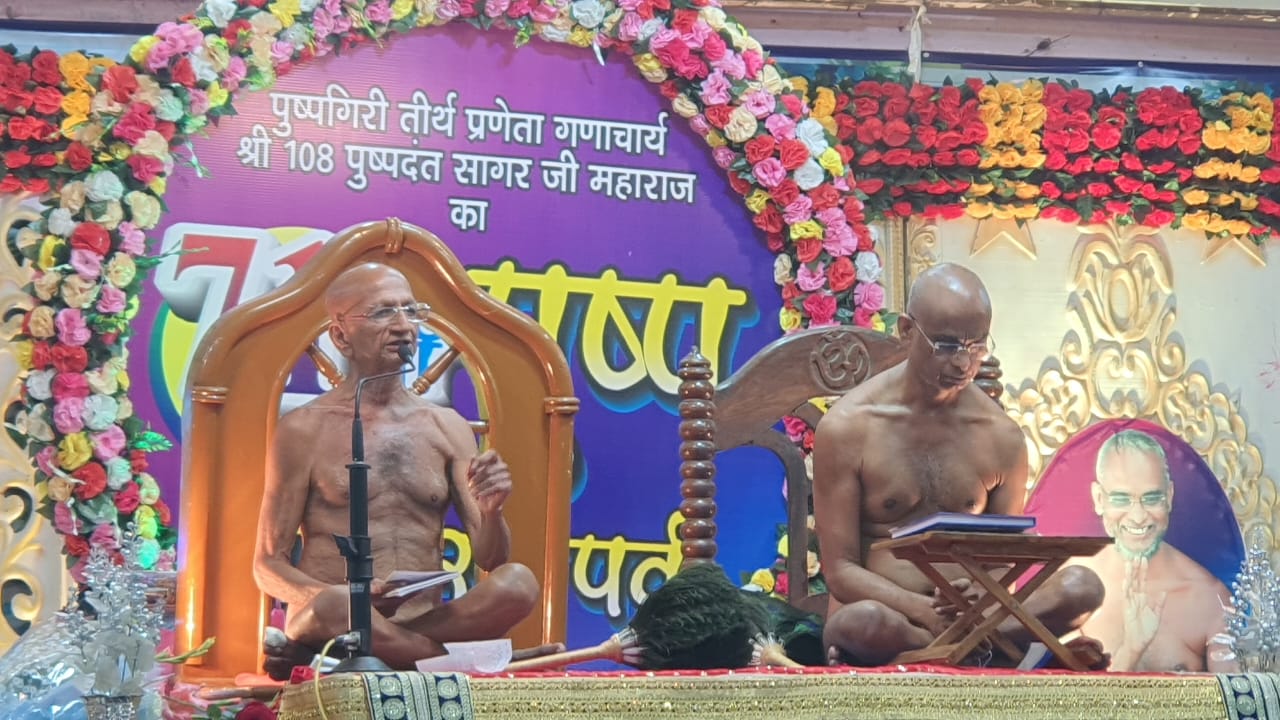 आज भिण्ड में चारों ओर हर्ष और उत्साह का माहौल रहा। उगर में पूर्व से विराजित जैन संत आचार्य श्री विनिश्चयसागर जी महाराज से तथा कल दिनांक 31 दिसम्बर को नगर में पधारे जैनसत आचार्य श्री पुष्पदन्त सागर जी महाराज का भावभनीता मंगल मिलन ठूला। बुदा ही प्रायन दृश्य था यह जब निषद्ध की धरती पर धरती के दो देवता आचार्य श्री पुष्पदन्तु सागर जी महाराज एवं आचार्य श्री विनिश्चयसागर जी महाराज का महामिलन हुआ। नगर में विराजित आचार्य पिनिश्चय सागर जी महाराज एवं संघुसा साधुओं ने कुछ आगे जाकर आचार्यश्री की आगवानी की। दोनों संघ हर्षेल्लास पूर्वक चैत्यालय मंदिर अऋषभ भवन में विराजमान हुए। आज नये वर्ष की बेला के साथ ही आचार्य पुष्पदन्त सागर जी महाराज का 71 वी अवतरण विषस ऋषभ भवन में द्वयआचायाँ के मंगल सानिध्य में मनाया गया। बाहर से पधारे भक्तगणों के साथ श्री मिषद्ध नगर पासियों ने द्वयाचायाँ का पाढ़ प्राच्छालन कर संगीत के साथ द्वयजाचार्यों की पूजा की। इस अवसर पर आचार्यश्री विनिश्चयसागर जी महाराज ने ससंघ के सार आचार्य पुष्पदन्तसागर जी महाराज को नवीन पिच्छी जमवल शाक्य उपकार नंद किये। आचार्य पुष्पदन्त सागर जी महाराज ने भी आचार्य श्री विनिश्चयसागर जी महाराज को शास्त्र भेद किया। परचात् इयभामायाँ ने अपनी मंगल देशना से कल्याणकारी पचन धर्मसभा को प्रतान किये।