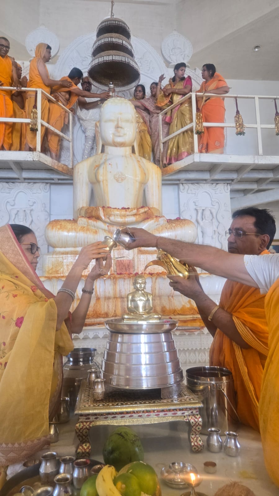 जयपुर। 21 अप्रैल राजधानी के अजमेर रोड़ टोल प्लाजा स्थित चंद्रपुरी के चंद्रप्रभु दिगंबर जैन मंदिर के प्रांगण में स्थित पूज्य आर्यिका रत्न सुपार्श्वमती माताजी के समाधि स्थल पर माताजी का 14 वाँ अंतर विलय दिवस हर्षोल्लास पूर्वक मनाया गया। इस दौरान ब्रह्मचारी जिनेश भैया के निर्देशन में सर्व प्रथम समाज श्रेष्ठियों ने भगवान चंद्र प्रभु के पांच रसों से पंचामृत कलशाभिषेक किए और विश्व में शांति की प्रार्थना करते हुए शांतिधारा कर अष्ट द्रव्य अर्घ चढ़ाएं और नित्य नियम पूजन किया गया। इस अवसर पर श्रीपाल, भागचंद, महिपाल, सरोज चुड़ीवाल परिवार गुवाहाटी से और अशोक जैन बारपेटा से विशेष तौर पर उपस्थित रहे और भगवान का कलशाभिषेक किया।
