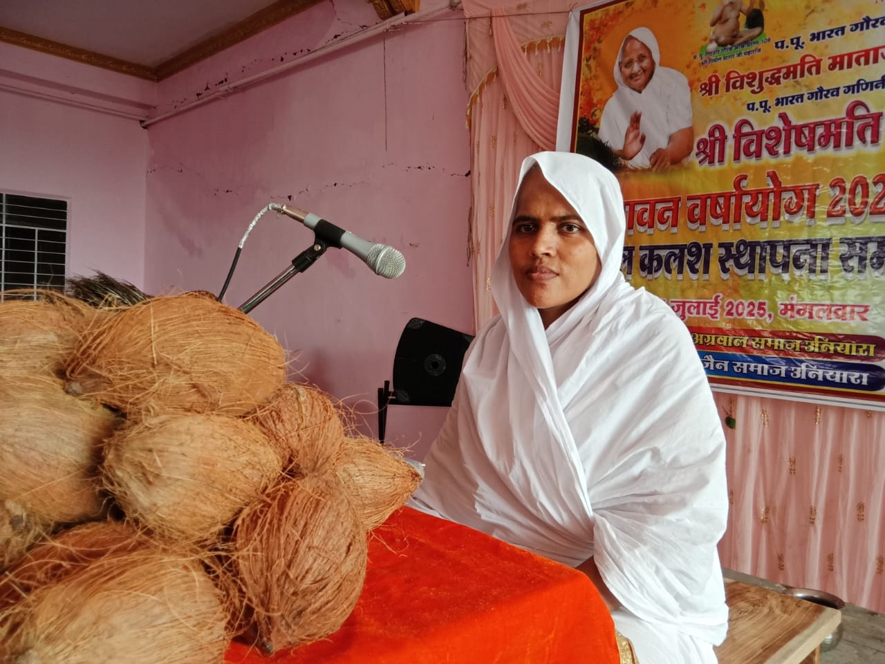 उनियारा जिला टोंक परम पूज्य भारत गौरव गणिनी आर्यिका रत्न विशुद्ध मति माताजी की परम प्रभावक परम शिष्या गणिनी विशेष मति माताजी के वर्षा योग कलश स्थापना दोपहर 2:00 बजे अग्रवाल धर्मशाला में अपार धर्म प्रभावना से वर्षा योग कलश की बोलियां संपन्न हुई