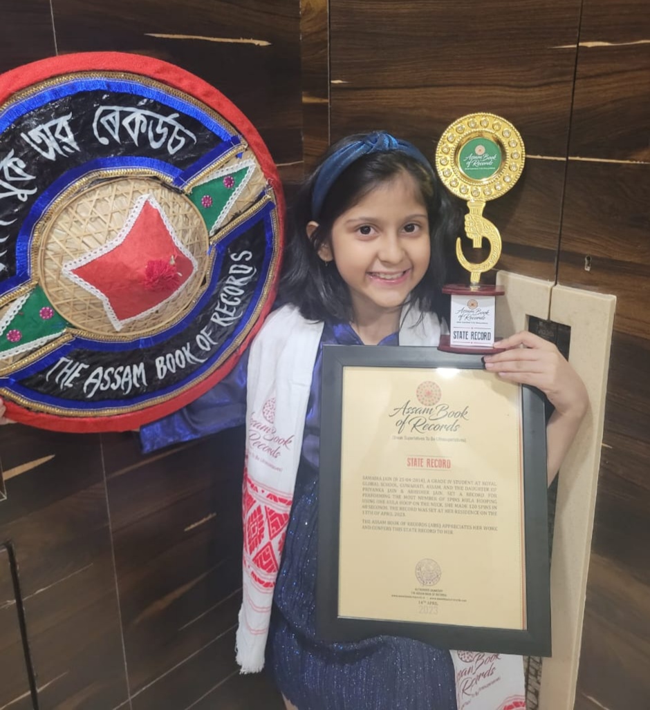 गुवाहाटी की नौ वर्षीय बच्ची समायरा जैंन ने हुल्ला हापिंग, जिसमे कमर के चारों और रिंग को घूमाकर असम बुक ऑफ रिकॉर्ड्स, ओएमजी बुक ऑफ़ रिकार्ड्स, इंडिया बुक ऑफ़ रिकार्ड्स, एशिया बुक ऑफ़ रिकार्ड्स, मैं अपना नाम दर्ज करवा लिया है। समायरा जैंन ने यह रिकॉर्ड 6 मिनट 23 सेकंड मे 800 हुला हॉपिंग स्पिन कमर के चारों ओर घूमा कर संयुक्त राष्ट्र द्वारा मान्यता प्राप्त 195 देश की राजधानियों के नाम बता कर रिकॉर्ड बनाया है। समायरा जैन गुवाहाटी निवासी अभिषेक- प्रियंका जैन की पुत्री है।
