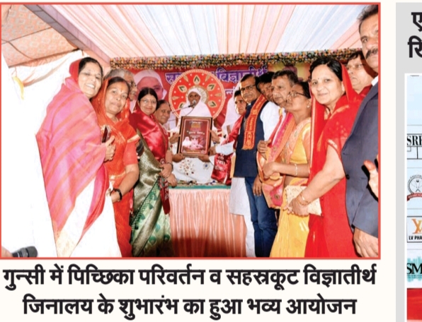 10 दिसंबर रविवार को दिगंबर जैन सहस्त्रकुट, विज्ञा तीर्थ जिला टोंक में नवीन जिनालय शुभारंभ समारोह पिछिक। परिवर्तन समारोह में दूर-दूर से मुनि भक्तों ने पहुंचकर कार्यक्रम अपार शोभा बढ़ाई