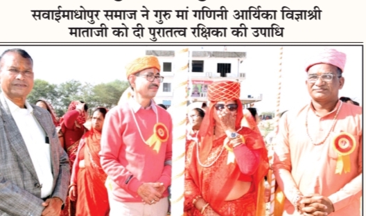 माता ने भी बताया कि जहां मंगल कलश होता है वह जंगल में मंगल हो जाता है समझ में सवाई माधोपुर समाज के द्वारा गुरु मां विद्या श्री माता को पुरातत्व रक्षिका की उपाधि दी गई