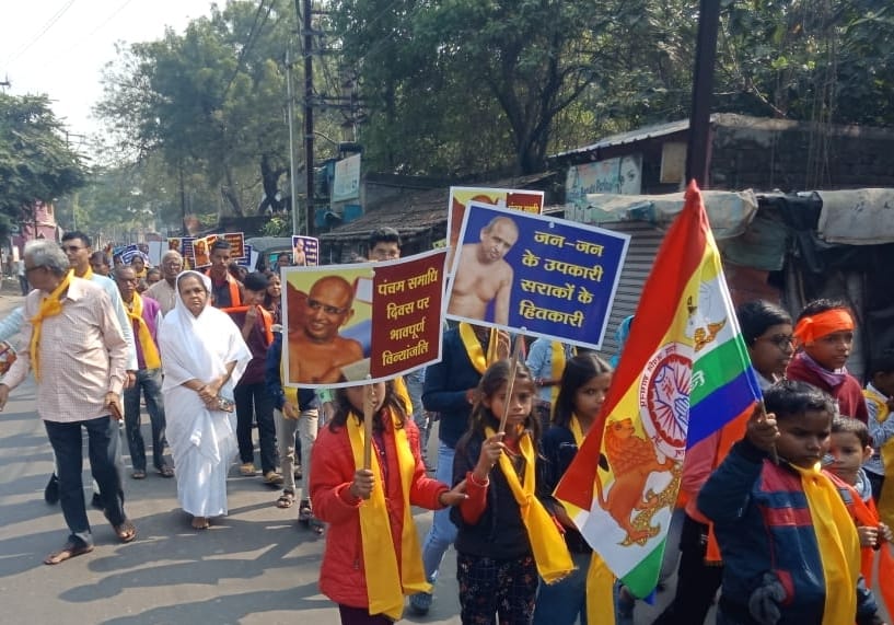 मुरैना (मनोज जैन नायक) परम पूज्य गुरुदेव सराकोद्धारक, प्रातः स्मरणीय, वात्सल्यरत्न, राष्ट्रसंत, आचार्यश्री 108 ज्ञानसागर जी महाराज के पंचम समाधि दिवस के उपलक्ष्य में हजारों प्राच्य जैन सराक बन्धुओं, महिला, बाल- गोपाल एवं सराक क्षेत्र के जैनेतर गुरुभक्तों के उपस्थिति में सराकोत्थान केंद्र रघुनाथपुर पश्चिम बंगाल में विशाल समारोह आयोजित किया गया । जिसमें अपने गुरु से प्राप्त मार्गदर्शन पर चलने तथा उनके आशीर्वाद से किये जा रहे समाज उत्थान कार्यो को प्रोन्नति करने पर सतत् प्रयासरत रहने की भावना व्यक्त किए।