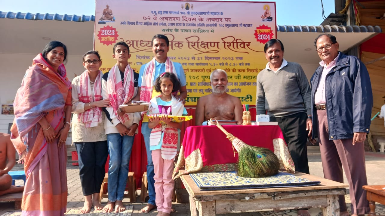 गुवाहाटी :पुष्पदंत सागर महाराज एक ऐसे संत है, जिन्होंने इस समाज को जीवन्त बना दिया । उन्होंने अपने जीवन में जो किया वह एक इतिहास बन गया। उन्होंने मात्र 21 वर्ष में अपना गृह त्याग कर आचार्य विद्यासागर महाराज से सन्यास मार्ग लेकर मोक्ष मार्ग को प्रशस्त कर रहे हैं। उन्होंने पूरे भारत का भ्रमण कर छोटे-छोटे बच्चों को दीक्षा देकर मोक्ष मार्ग पर बढ़ाया।आचार्य श्री ने कहा कि उनके प्रथम शिष्य आचार्य तरुण सागर महाराज बने जिन्होंने जैन धर्म को जन-जन का धर्म बना दिया। पुष्पदंत सागर महाराज इतिहास दोहराते नहीं इतिहास बनाते हैं ।उनकी करुणा का जीता जागता उदाहरण में स्वयं बैठा हूं। यह युक्त बातें आचार्य प्रमुख सागर महाराज ने सोमवार को फैंसी बाजार स्थित भगवान महावीर धर्म स्थल में आचार्य श्री पुष्पदंत सागर महाराज के 72वें अवतरण दिवस के उपलक्ष में कहीं। उन्होंने कहा कि आज आचार्य श्री का जन्म महोत्सव हर भक्त बड़े धूमधाम से बना रहा है।इससे पूर्व आचार्य श्री के मुखारविंद से श्रीजी का अभिषेक, शांतिधारा, दीप -प्रज्वलन, चरण प्रक्षालन, शास्त्र भेंट आदि करने का सौभाग्य मिश्रीलाल बाकलीवाल के सुरेश कुमार -ललिता देवी, अमित कुमार- स्नेहा देवी, सारव, कायरा, जेसवी बाकलीवाल परिवार गुवाहाटी को प्राप्त हुआ। प्रचार प्रसार के मुख्य संयोजक ओम प्रकाश सेठी ने बताया कि नव वर्ष के अवसर पर एवं गणार्चाय पुष्पदंत महाराज के अवतरण दिवस के उपलक्ष में तथा विश्व में शांति स्थापना हेतु शांतिनाथ महामंडल विधान का आयोजन किया गया। जिसमे बड़ी संख्या मे समाज के बच्चे, पुरूष एवं महिलाओं ने भाग लेकर पुण्यार्जन किया। इस अवसर पर साय: उपकार क्लासेज द्वारा कैसे बने सुशील से गणाचार्य पुष्पदंत सागर महाराज नामक नाटिका प्रस्तुत कि गई। प्रचार प्रसार के सहसंयोजक सुनील कुमार सेठी ने बताया की बड़ी संख्या में लोगों ने गुरुवर का आशीर्वाद प्राप्त कर अपने जीवन को धन्य किया।।