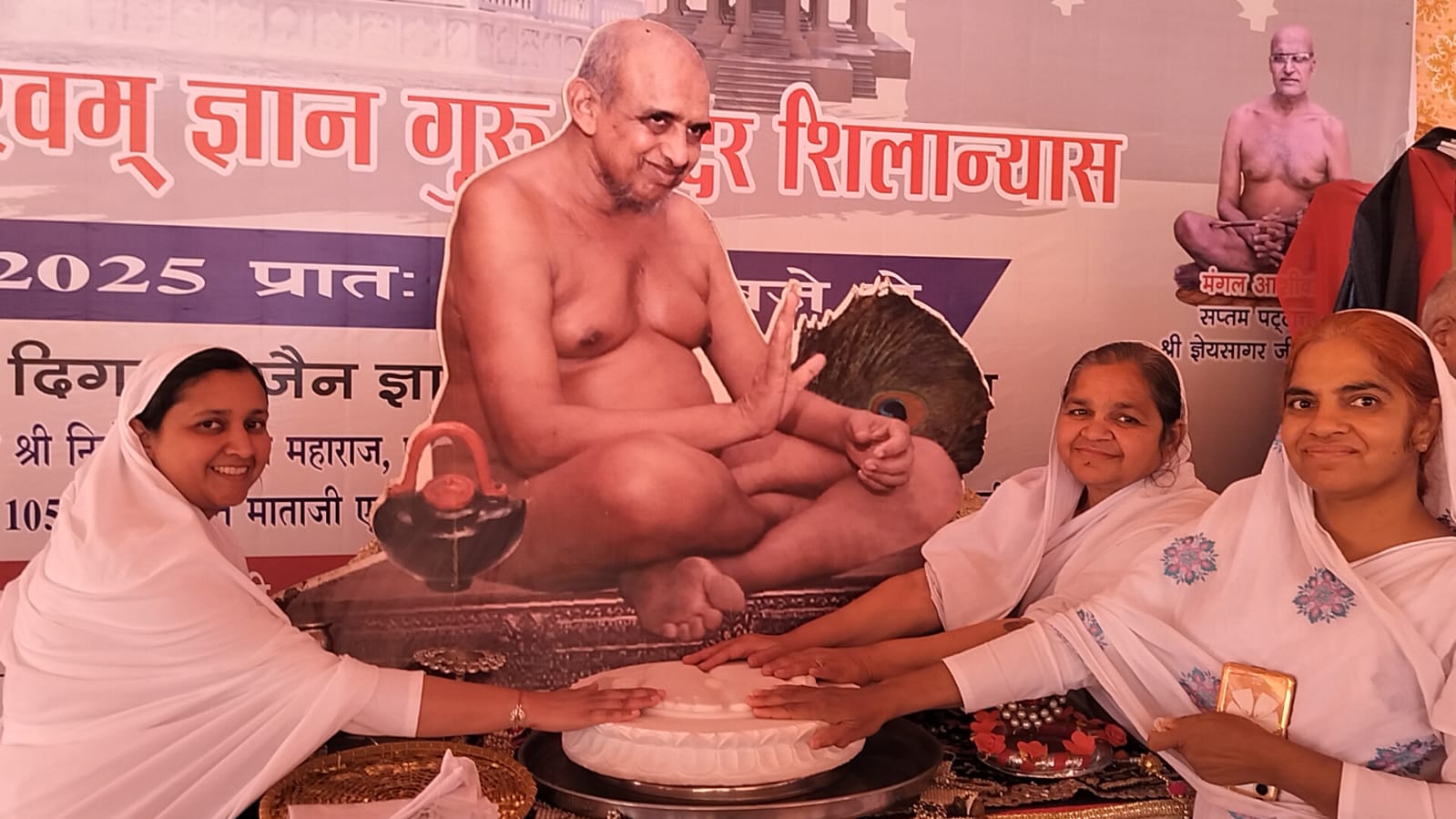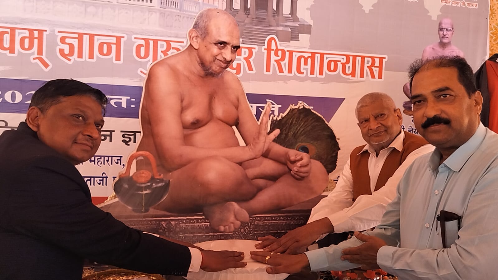शिलान्यास समारोह में ध्वजारोहण श्री मुकेश जैन विटूमेन आगरा, चित्र अनावरण एवं दीप प्रज्वलन श्री बकीलचंद जैन खैकड़ा परिवार, श्री सतेंद्र जैन बुढ़ाना वाले, ग्वालियर संयुक्त कलेक्टर श्री संजीव जैन सहित अथिति श्रावक श्रेष्ठियों द्वारा किया गया । आचार्य श्री ज्ञानसागर जी के चरणों का पाद प्रक्षालन का सौभाग्य जैन मित्र मंडल की ओर से टिकटोली के अध्यक्ष राजेंद्र भंडारी, पूर्व अध्यक्ष महेशचंद बंगाली सहित सभी सदस्यों, पवन बृजेश जैन विवेक बिहार, टीनू जैन दिल्ली को प्राप्त हुआ ।