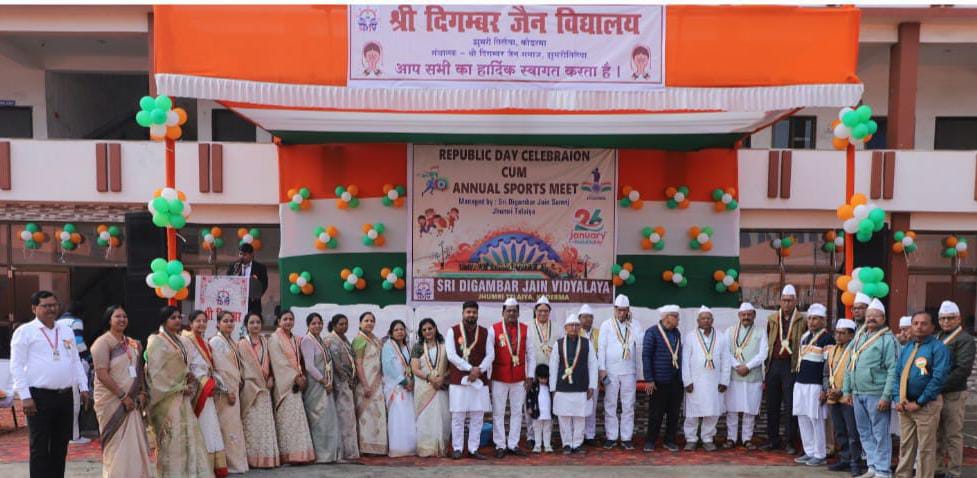 हर्षोल्लास के साथ दिगंबर जैन विद्यालय में मनाया गया गणतंत्र दिवस समारोह सह वार्षिक खेल उत्सव श्री दिगंबर जैन विद्यालय पानी टंकी रोड में मनाया गया।झुमरीतिलैया-हर्षोल्लास के साथ दिगंबर जैन गणतंत्र दिवस समारोह सह वार्षिक खेल उत्सव श्री दिगम्बर जैन विद्यालय ग्राउंड में मनाया गया।बड़े ही धूमधाम से गणतंत्र दिवस समारोह मनाया गया इस समारोह का झंडा रोहण मुख्य अतिथि एवं झंडारोहण कर्त्ता समाज के उपमंत्री नरेंद्र झांझरी के कर कमलों से संपन्न हुआ