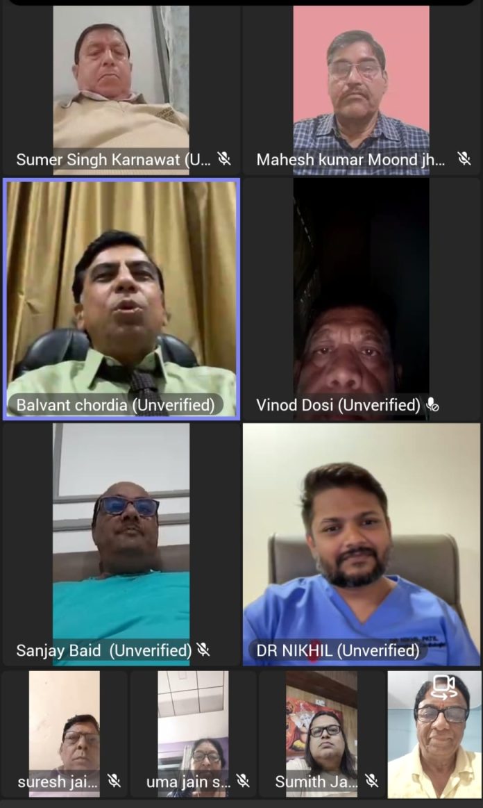 महावीर इंटरनेशनल की ई चौपाल दोस्ती से सेवा में इंटरनेशनल डायरेक्टर नॉलेज शेयरिंग एवं ई चौपाल अजीत कोठिया के संयोजन में इंटरनेशनल डायरेक्टर मेडिकल एवं हेल्थ डॉ बलवंत चोरड़िया तथा डॉ निखिल पाटिल हृदय रोग, इससे जुड़ी भ्रांतियों, एंजियोग्राफी, एंजियोप्लास्टी, बाय पास सर्जरी ओर कई विविध दिल से जुड़े विषयों पर तथ्यों और वीडियोज के माध्यम से लाभदायक जानकारियां दी। अजीत कोठिया ने बताया की चौपाल में पूरे देश से 82लोग जुड़े। प्रारंभ में सुनीता जम्मार ने ईश वंदना की। डॉ बलवंत चोरड़िया ने युवा हृदय रोग शल्य चिकित्सक डॉ निखिल पाटिल का परिचय दिया। चिकित्सकों ने कोरोना टीकाकरण के बाद हार्ट अटैक जैसी भ्रामक सूचनाओं को सिरे से नकार दिया। संभागियों को चिकित्सकों ने खान पान में सावधानियां बरतने ओर धूम्रपान से बचने की सलाह दी। मधुमेह पीड़ितों ओर रक्त चाप के मरीजों को नियंत्रित एवं सहज जीवन जीने का आग्रह किया गया। गुड ओर बेड कोलेस्ट्रॉल पर भी सूचनाएं प्रदान की गई। इस आयोजन में संजय बेद, विनोद जाखड़, प्रदीप टोंग्या, विनोद दोसी, शिवकुमार व्यास, राजेंद्र सिंह राठौड़ राज जैन पंचकुला, दीपा शिसोदिया, डॉ मधु प्रकाश, सुरेश गांधी, सोहन वैद्य, निर्मल सिंघवी सहित कई सदस्यों की शंकाओं और जिज्ञासाओं का भी समाधान किया गया। कार्यक्रम संचालन अजीत कोठिया ने किया, आभार डॉ बलवंत चोरड़िया और महेश कुमार मूंड ने प्रकट किया।