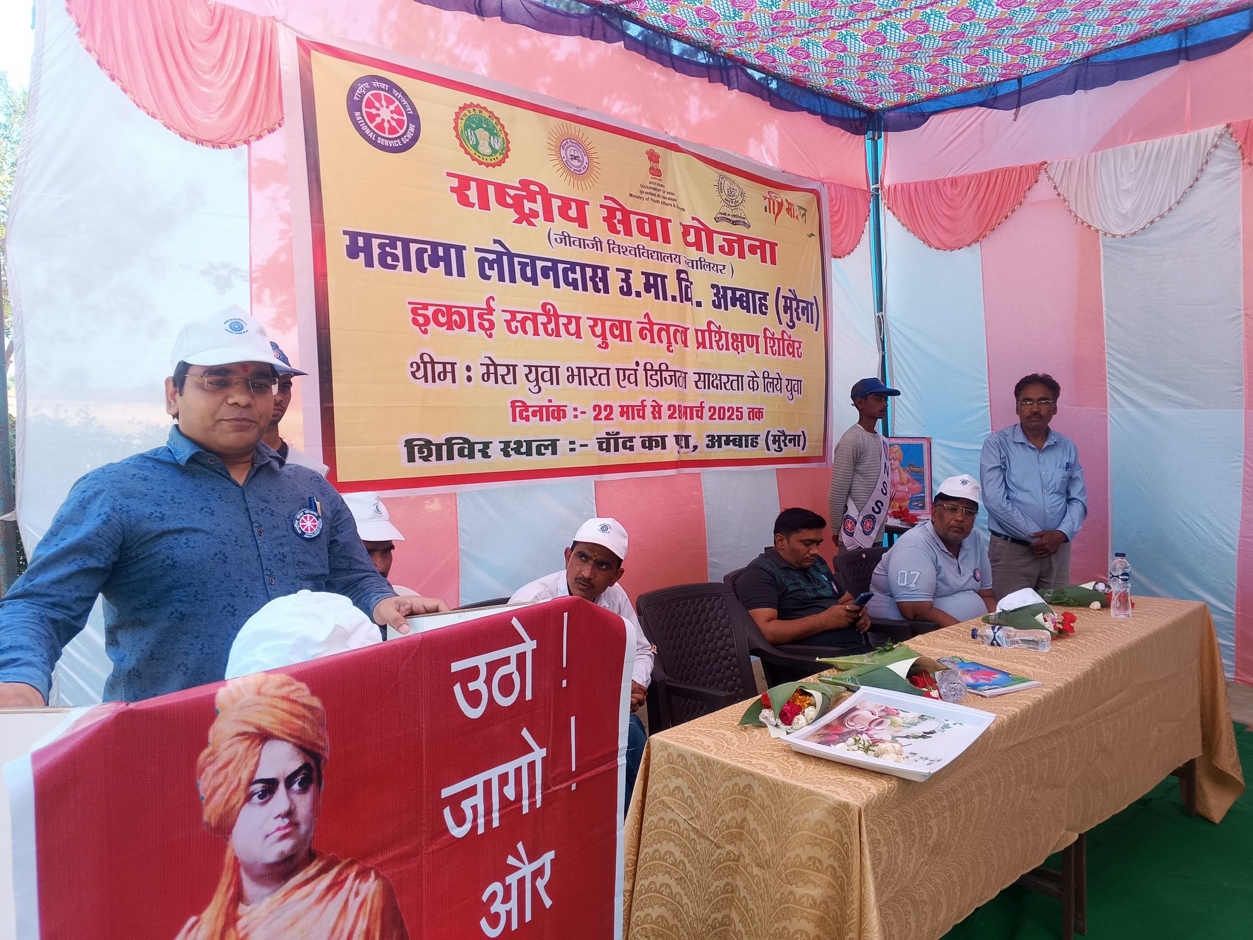 अम्बाह/मुरैना (मनोज जैन नायक) महात्मा लोचनदास उमावि अम्बाह की राष्ट्रीय सेवा योजना इकाई द्वारा चांद का पुरा में आयोजित किए जा रहे सात दिवसीय युवा नेतृत्व प्रशिक्षण शिविर में दूसरे दिन स्वास्थ्य एवं प्रभावी संचार कौशल विषयों पर प्रशिक्षण दिया गया।