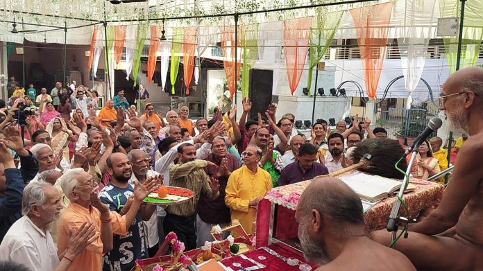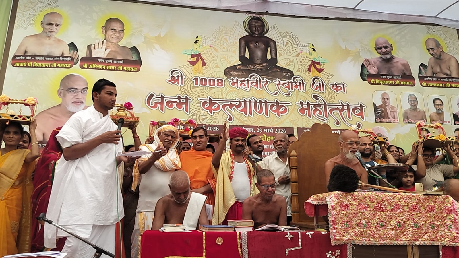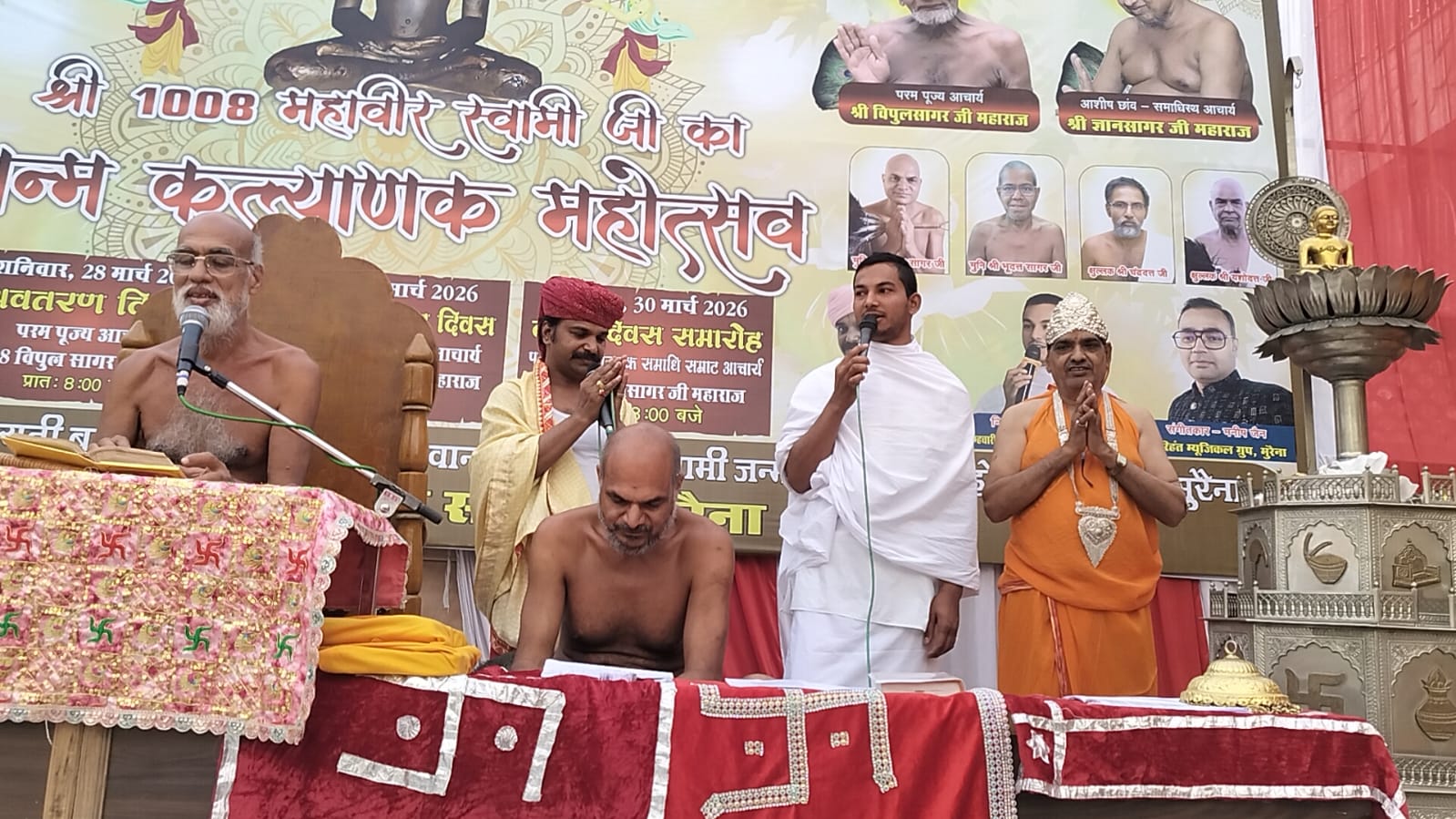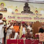 नगर के श्री पार्श्वनाथ दिगंबर जैन पंचायती बड़ा मंदिर में मांगलिक क्रियाओं के साथ जिनेंद्र प्रभु का अभिषेक, शांतिधारा एवं पूजन के पश्चात सभी गुरु भक्तों ने विश्व में सुख-समृद्धि व शांति की कामना के साथ भक्तिमय अनुष्ठान किए । श्री महावीर स्वामी विधान अनुष्ठान के दौरान अर्घ्य समर्पित किए गए । तत्पश्चात वैज्ञानिक संत आचार्यश्री निर्भयसागरजी महाराज का अष्टद्रव्यों से पूजन कर पूज्य आचार्यश्री की महिमा का गुणगान किया गया और जिनेंद्र देव से पूज्यश्री के दीर्घायु की कामना की गई ।