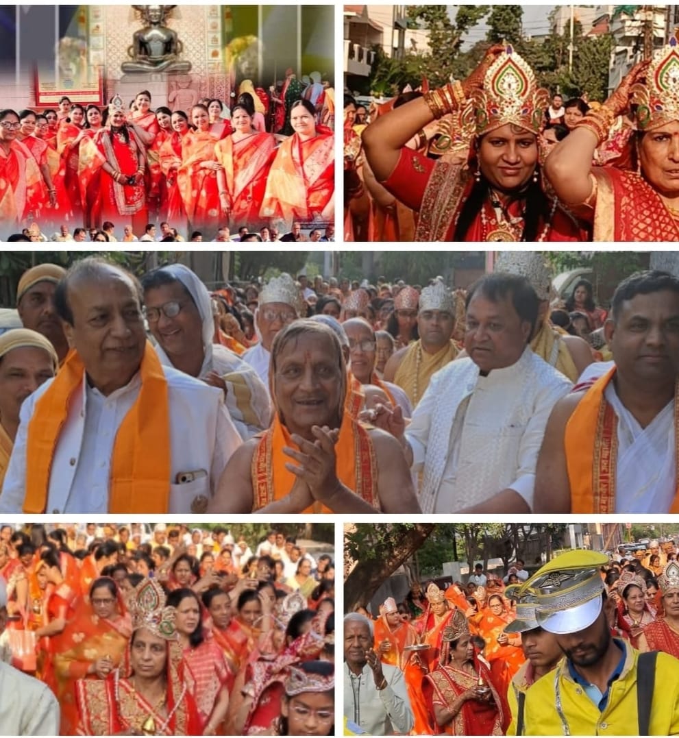 इंदौर । आज रविवार को श्री 1008 चिन्तामणी पार्श्वनाथ दिगम्बर जैन पंचायति बडा मंदिर में श्री सिद्धचक्र महामंडल विधान प्रारंभ किया गया। प्रात: दानवीर समाजरत्न श्रीमती सुधादेवी स्व.श्री राजेन्द्र कुमार फार्चुन परिवार के निज निवास से मंदिर जी तक द्रव्ययात्रा निकाली गई तत्पश्चात घटयात्रा प्रारंभ हुई जिसमें सैकडों की संख्या में महिलाऐं और पुरूष इन्द्र इन्दाणी विशेष ड्रैस में मंगलकलश लेकर और नाचते गाते चल रहे थे। घटयात्रा मंदिर जी में वापिस पहुंचकर पुण्यार्जक फार्चुन परिवार,विकास जैन JMB सहित अनेकों दानदाताओं ने ध्वजारोहण किया। विधान की मांगलिक क्रियाऐं पंडित संजय भैय्या जी द्वारा सम्पन्न करवाई गयी। समाजजनों ने बडचढकर विधान में शिरकत की। शाम को महाआरती आयोजित की गई , ब.ब.संजय भैय्याजी के प्रवचन हुऐ और रात्रि में सांस्कृतिक आयोजन हुआ। सभी इंद्रों का सम्मान मनोहरलाल , शैलेंद्र जैन ने किया । संपूर्ण दानदातारों और पुण्यार्जक परिवार का आभार डीके जैन ने माना।