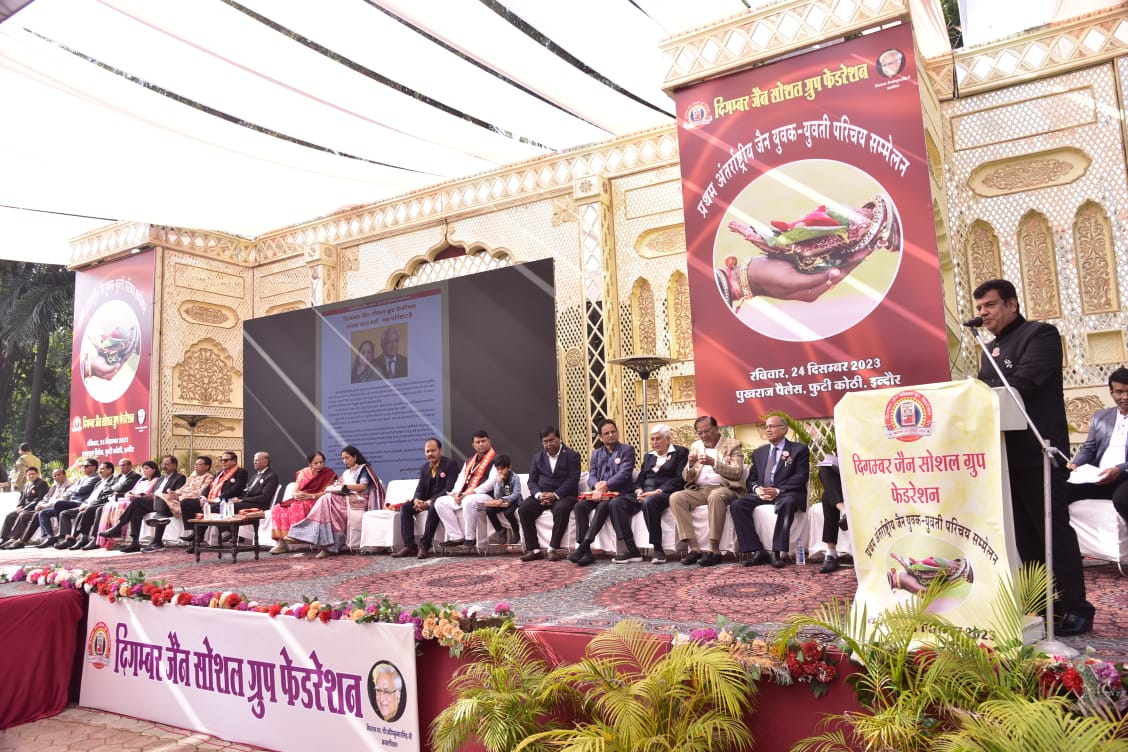 इंदौर शहर में दिगंबर जैन सोशल ग्रुप फेडरेशन द्वारा आयोजित अंतरराष्ट्रीय जैन युवक युवतियों के परिचय सम्मेलन में2500 से अधिक परिजनों व 500 से अधिक युवक युवतियों ने अपनी उपस्थिति दर्ज कराकर सहभागिता निभाते हुए कार्यक्रम को सफल बनाया उक्त ऐतिहासिक कार्यक्रम में इन्दौर शहर के सांसद शंकर लालवानी, विधायक मालिनी गौड़, महापोर पुष्यमित्र भार्गव, सदस्य निती आयोग की सदस्या श्रीमती अर्चना जैन जी व अन्य गणमान्य महानुभावो की गरिमामयी उपस्थिति में उक्त आयोजन सफलता पूर्वक संपन्न हुआ। कार्यक्रम के राष्ट्रीय अध्यक्ष श्री राकेश बिनायका ने बताया कि आयोजन के प्रायोजक व समारोह गौरव समाज श्रेष्टी श्रीमान अशोक जी पाटनी (R.K Marble) किशनगढ़, श्रेष्टी श्रीमान नन्द किशोर जी,श्रीमान प्रमोद जी पहाड़िया (ARL Group) जयपुर तथा अमित जी कासलीवाल (कासलीवाल होण्डा) इन्दौर रहे, मंडप उद्घाटन श्री मुल्क राज बादशाह बॉम्बे हॉस्पिटल जबलपुर द्वारा किया गया