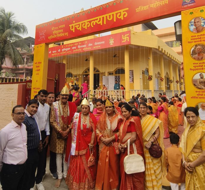 जागीरोड/ गुवाहाटी: पंचकल्याणक महोत्सव का दूसरा दिन गर्भ कल्याण के रूप में बनाया गया। इस अवसर पर आचार्य श्री अरिजीत सागर महाराज ने उपस्थित श्रद्धालुओं को इसकी महत्वता के बारे में बताते हुए कहा की तीर्थंकर प्रभु का ही गवं कल्याणक बनाया जाता है। क्योंकि पूर्वभवों में उन्होंने सोलहकारण भावना पढ़ कर तीर्थंकर मुक्ति का बंध किया था। उन्होंने कहा कि गर्व कल्याणक महोत्सव सबको गर्व के साथ स्वीकार करना चाहिए जिससे हमारा भी गर्भ कल्याणक हो। इस कार्यक्रम में काफी संख्या में पूर्वोत्तर से श्रद्धालु पहुंचे हैं। इससे पूर्व प्रथम दिन पंचकल्याण का प्रारंभ घट यात्रा के साथ हुआ। श्री दि. जैन समाज जागीरोड के तत्वाधान में आयोजित समारोह में आचार्य श्री ने उपस्थित श्रद्धालुओं को संबोधित करते हुए कहा कि पंचकल्याणक में पंच महोत्सव होते हैं जन्म, गर्भ,तप,ज्ञान, मोक्ष कल्याण। यह पांचो महोत्सव उसी के होते हैं जो पांचो पापों से बचते हैं ऐसे जीव पंच प्रवर्तन पूर्ण करके पंचम गति के मेहमान बनते हैं। आपने कहा की जिस भूमि पर साक्षात तीर्थंकर भगवान का पंच कल्याणक होता है वह भूमि तीर्थ हो जाती है। उन्होंने कहा कि इस भूमि का पुण्य उदय है, जो यहां पंचकल्याण की महा पूजन होने जा रही है। इससे पूर्व ध्वजारोहन झूमरमल-पन्नालाल गंगवाल (गुवाहाटी) सपरिवार को व मंडप का उद्घाटन राज कु.- पवन कु. सपरिवार को प्राप्त हुआ। तथा तीर्थंकर भगवान के माता-पिता बनने का सौभाग्य सुशील कुमार संगीता देवी गंगवाल (गुवाहाटी) को प्राप्त हुआ है।