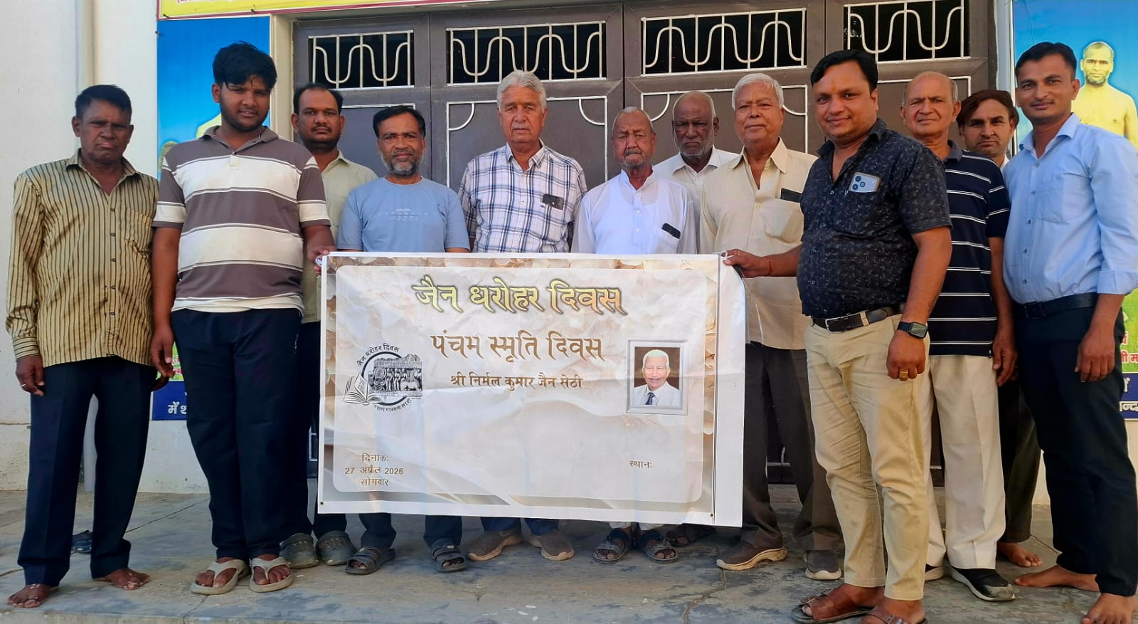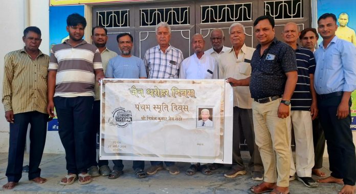माधौराजपुरा कस्बे के दिगम्बर जैन मंदिर में समाज के धर्मावलम्बियों द्वारा समाज सेवी गरीबों के मसीहा स्व. श्री निर्मल कुमार जीसेठी तत्कालीन राष्ट्रीय अध्यक्ष दिगम्बर जैन समाज की पंचम पुण्यतिथि 27 अप्रैल 2026 को जैन धरोहर दिवस के रूप में मनाया जाएगा, जैन महासभा के प्रतिनिधि राजाबाबू गोधा ने बताया कि स्व. श्री निर्मल कुमार जी सेठी श्री भारतवर्षीय दिगंबर जैन महासभा के 40 वर्षों तक राष्ट्रीय अध्यक्ष तथा जैन राजनैतिक चेतना मंच के संस्थापक राष्ट्रीय अध्यक्ष रहकर समाज की सराहनीय सेवाएं की है , तथा समाज के प्रति उनका अतुल्य योगदान रहा है,परम आदरणीय समाज श्रेष्ठी जिनकी पुण्यतिथि पर भावभीनी श्रद्धांजलि हेतु आज दिगम्बर जैन समाज माधोराजपुरा के पदाधिकारियों द्वारा बैनर का विमोचन किया जिसमें गया, पारसमल मित्तल, सत्यनारायण कलवाड़ा, पदमचंद कंदोई, राजेंद्र बाकलीवाल, दिनेश बोहरा, सोनू सर्राफ ,राजेंद्र चंवरीवाल, विष्णु बोहरा, धर्मचंद बाकलीवाल, कमलेश जैन, तथा दिवांशु बोहरा सहित सभी पदाधिकारी मौजूद थे।