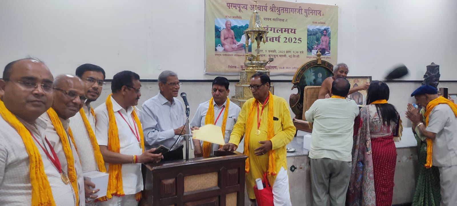 दिनांक 18 मार्च 2025 बालयोगी आचार्य 108 श्री सौभाग्य सागर जी महाराज ससंघ के पावन सानिध्य में अखिल भारतीय जैन ज्योतिषाचार्य परिषद (पंजी.) का अष्टम अधिवेशन श्री 1008 पार्श्व नाथ दिगंबर जैन मन्दिर ग्रीनपार्क, नई दिल्ली में आयोजित किया गया,