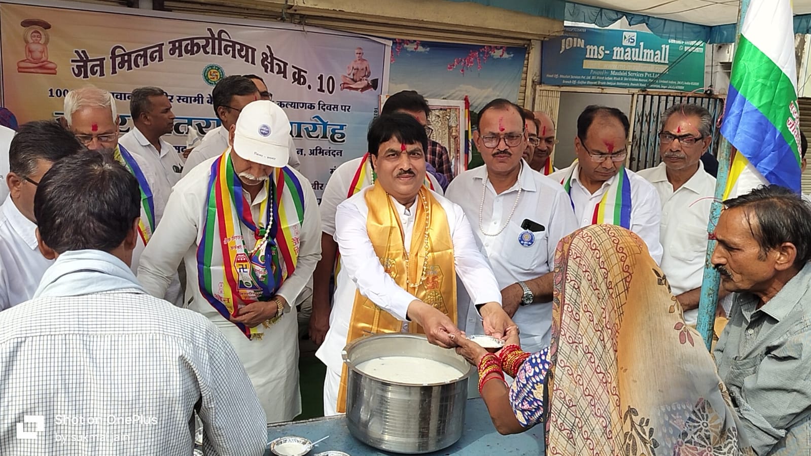 सागर/- जैन मिलन मकरोनिया क्षेत्र क्रमांक 10 के द्वारा 1008 श्री महावीर स्वामी के जन्म कल्याण महोत्सव के अवसर पर सुबह विशाल वाहन रैली सभी जैन मंदिरों से होकर अंकुर कॉलोनी जैन मंदिर में समापन हुआ रैली का जगह-जगह फल ,मिष्ठान स्वागत हुआ। दोप. में श्री जी की शोभायात्रा में अपनी सहभागिता दी तथा इस अवसर पर समाज के सैकड़ो परिवारों ने अपने-अपने घरों के सामने रंगोली बनाकर श्री जी की अगवानी करते हुए आरती उतारी एवं श्रीफल अर्पित किया। जैन मिलन द्वारा मकरोनिया चौराहा गुलझार भवन से खीर वितरण किया गया। कार्यक्रम में मुख्यअतिथि के द्वारा दीपप्रज्वलन एवं महावीर प्रार्थना के साथ अति वीर कमलेन्द्र जैन राष्ट्रीय मंत्री, श्री गुलझारीलाल जैन वरिष्ठ समाजसेवी ,अतिवीर अरुण चंदेरिया क्षेत्रीय अध्यक्ष, वीर सुरेश जैन अध्यक्ष अध्यक्ष द्वारा किया गया ।वीर सुरेश जैन एवं राजेश जैन ने बतलाया कि खीर वितरण का कार्यक्रम जैन मिलन द्वारा पिछले 15 वर्षों से लगातार किया जा रहा है आज भी महावीर स्वामी के 2623 वें जन्मोत्सव जन्म कल्याणक की खुशी में सदस्यों द्वारा बधाई नृत्य किया एवं लगभग 3000 भक्तों को प्रसादी के रूप में खीर का वितरण किया गया। इस महोत्सव की विशेषता यह रही की जैन समाज के सदस्यों के अलावा जैनेत्तर बंधुओ ने विशेष तौर पर स्वामी विवेकानंद केंद्र कन्याकुमारी केंद्र सागर के पदाधिकारी ने बढ़-चढ़कर हिस्सा लिया एवं खीर वितरण में पूर्ण सहयोग किया।इस अवसर पर अतिथियों के अलावा मुख्य रूप से वीर रविंद्र जैन मंत्री, वीर निशिकांत सिंघई प्रचार मंत्री, वीर हेमचंद्र जैन कार्यकारी अध्यक्ष, वीर पीसी जैन वरिष्ठ उपाध्यक्ष, वीर शीतल जैन संगठन मंत्री ,वीर प्रकाश जैन मोदी मार्बल संगठन मंत्री, वीर जिनेश जैन बहरोल क्षेत्रीय उपाध्यक्ष, वीर संजय जैन शक्कर क्षेत्रीय कार्यकारी अध्यक्ष वीर मनीष जैन विद्यार्थी मीडिया प्रभारी एवं क्षेत्रीय संयोजक, वीर प्रदीप जी क्षेत्रीय संयोजक, वीर डालचंद जैन राष्ट्रीय कार्यकारिणी सदस्य, वीर अजीत जैन बैंक संयुक्त मंत्री, वीर राजेश मलैया संयुक्त मंत्री, वीर राकेश जैन पिपरिया, वीर अमित जैन हैंडलूम, वीर संतोष चौधरी, वीर सुनील जैन शाहगढ, वीर आनंद जैन ,वीर संजय जैन शिक्षक सांस्कृतिक मंत्री, वीर अनिल जैन सहारा, वीर ऋषभ जैन उपाध्यक्ष, वीर सुमित सिंघई, वीर अरुण जैन व्याख्याता उपमंत्री ,वीर शैलेंद्र प्राचार्य उपमंत्री ,वीर उत्तमचंद जैन सह कोषाध्यक्ष, राकेश जैन एमपीईवी विशेष कार्यकारिणी सदस्य वीर पवन सिंघई कार्यकारिणी सदस्य, वीर एडवोकेट कमलेश नायक विधि मंत्री, वीर संतोष चौधरी, वीर मृगेंद्र जैन नेता, श्री जसवंत सिंह ठाकुर पार्षद, श्री नरेंद्र रोहित जी, श्री जस्सी सरदार के साथ-साथ स्वामी विवेकानंद 