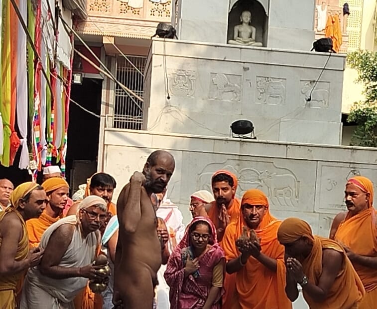 जैन मित्र मण्डल परिवार के राजकुमार जैन “राजू” के संयोजकत्व में सदस्यों ने युगल मुनिराजों को आहार देने का निश्चय किया । विगत दिवस इस कार्य को अंजाम देने का समय भी आया और जैन मित्र मण्डल को नवधा भक्ति के साथ युगल मुनिराजों का पढ़गाहन करने का सौभाग्य प्राप्त हुआ । सभी सदस्य सोला के वस्त्रों में हे स्वामी नमोस्तु नमोस्तु नमोस्तु, मन शुद्धि, वचन शुद्धि, काया शुद्धि बोलकर नवधा भक्ति के साथ मुनिश्री विलोकसागरजी महाराज का पढ़गाहन कर चौके में ले गए और श्रद्धा, भक्ति के साथ निरंतराय आहार कराया ।