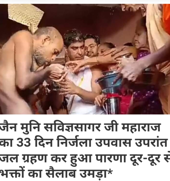33 दिन होने के उपरांत आचार्य सुनील सागर महाराज के निर्देशानुसार मुनि द्वारा मात्र जल ग्रहण किया गया जिसमें संपूर्ण राजस्थान संभाग के भक्तों का ताता नैनवा नगरी में देखा गया