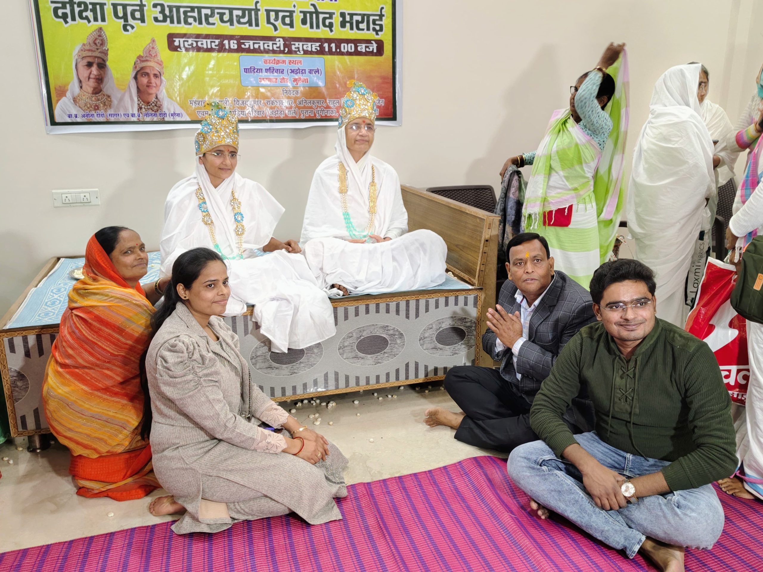 श्री पार्श्वनाथ दिगंबर जैन पंचायती बड़ा मंदिर के पूर्व अध्यक्ष महेशचंद जैन बंगाली ऋषभ इंटर प्राइजेज के निज निवास पर सैकड़ों साधर्मी बंधुओं की उपस्थिति में दोनों दीक्षार्थी बहिनों की दीक्षा पूर्व आहारचर्या एवम गोद भराई का आयोजन किया गया ।