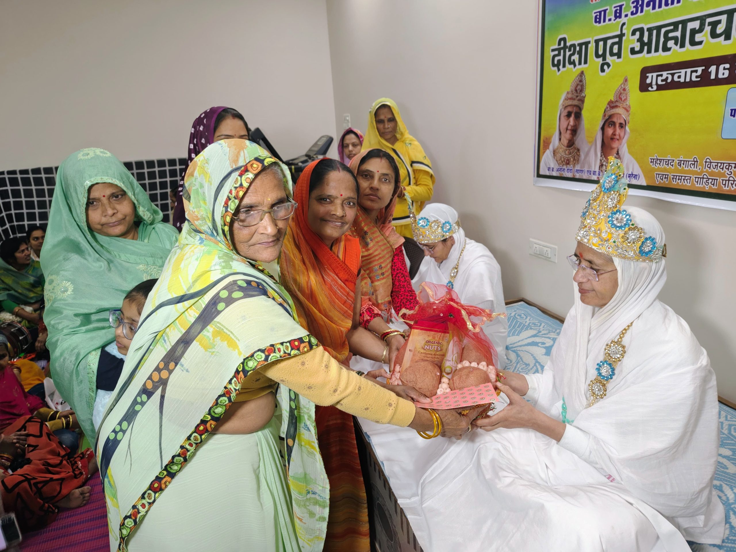 अंत में उपस्थित सभी साधर्मी बंधुओं, माता बहिनों ने पंच मेवा से दीक्षार्थी बहिनों की गोद भराई की । इस अवसर पर प्राचार्य अनिल जैन, विनोद जैन, राजेंद्र भंडारी, एडवोकेट धर्मेंद्र जैन, प्रेमचंद जैन, ओमप्रकाश जैन, सतेंद्र जैन, अतुल जैन, जिनेश जैन, सोनू जैन, पंकज जैन, विजय जैन, सुनील जैन, ब्रजेश जैन, दिनेश जैन, मनीष जैन, राजकुमार जैन, प्रवीण जैन, निर्मल जैन, नितिन जैन, नत्थीलाल जैन, रमाशंकर जैन, महेश जैन, योगेश जैन, ऋषभ जैन, आशीष जैन, सचिन जैन सहित सैकड़ों की संख्या में साधर्मी बंधु, माता बहिनें एवम युवा साथी उपस्थित थे ।