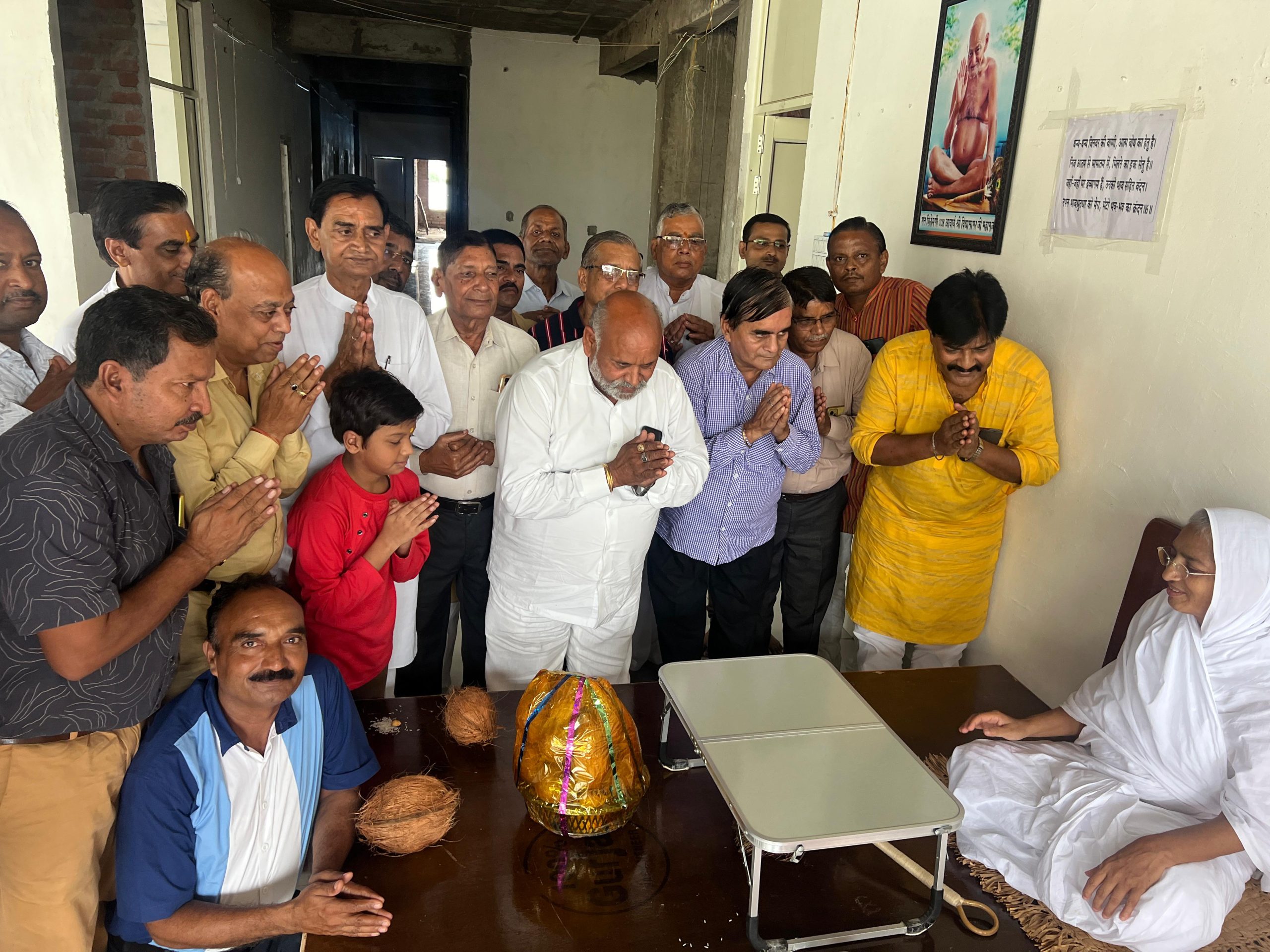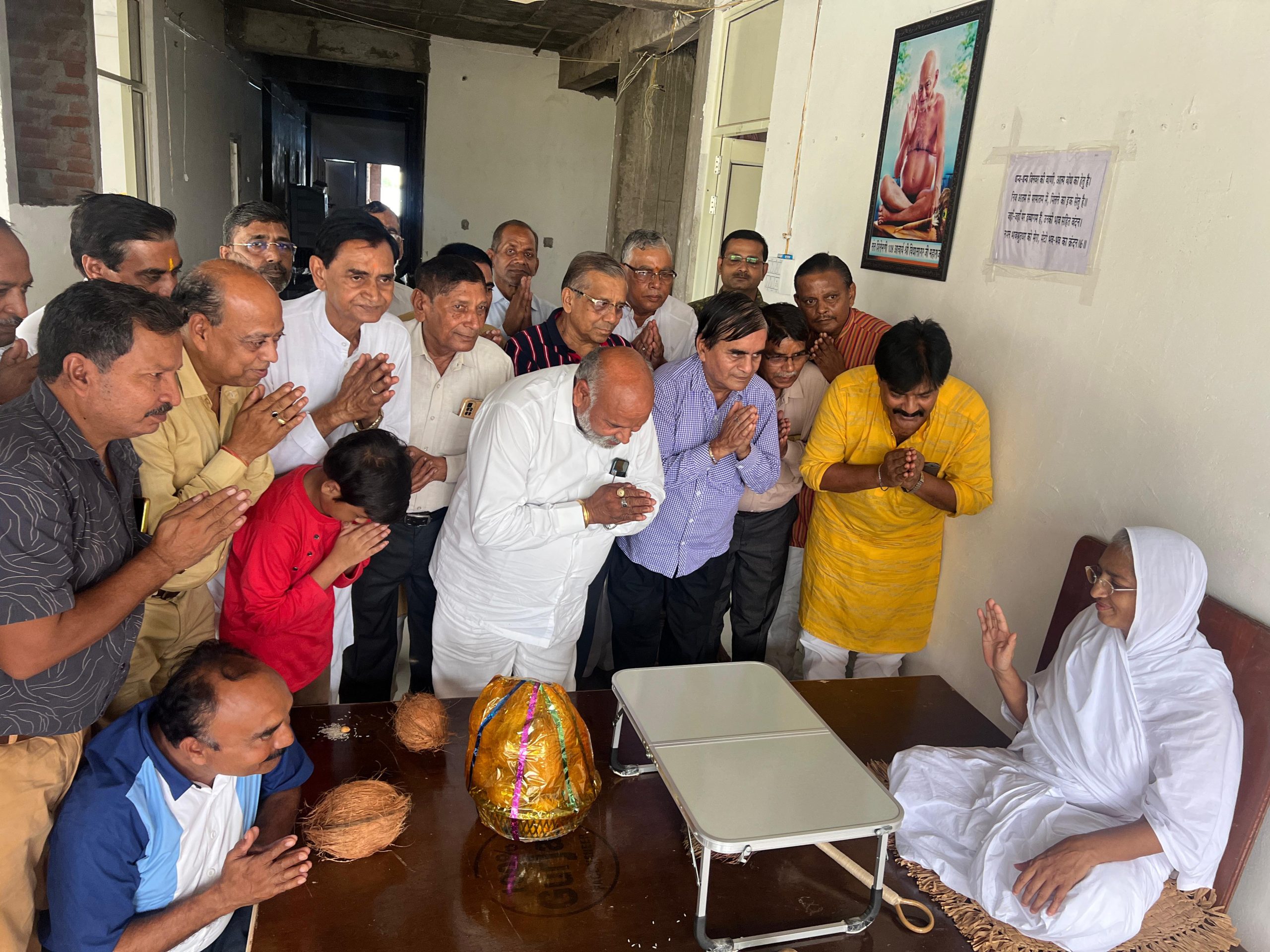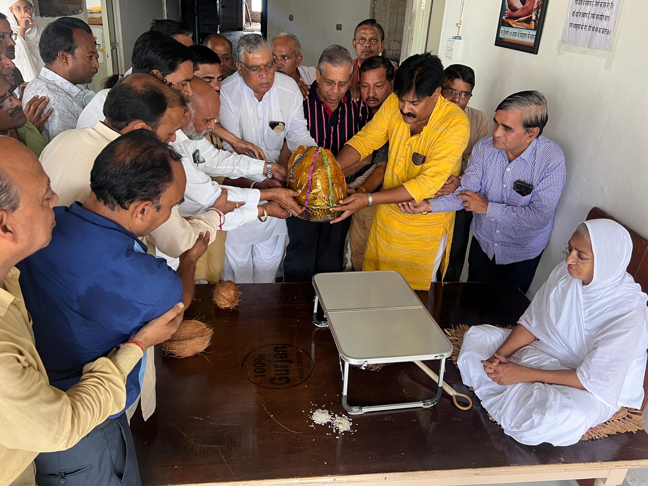 श्रीफल भेट करते समय योगेंद्र जैन, ओमप्रकाश जैन, महावीर प्रसाद बरेथा, एडवोकेट धर्मेंद्र जैन, महेशचंद, पंकज मेडिकल, राजेंद्र वैद्य जी, प्रदीप बरैया, एडवोकेट धर्मेंद्र जैन, ब्रजेश जैन दादा, नितिन जैन, अशोक मेडिकल, सुनील जैन बीमा, सुनील जैन पुच्ची, नरेश जैन टिल्लू, मनेंद्र जैन रानू, साकेत भंडारी, विजय परमेष्ठी, राजकुमार राजू प्रमुख रूप से उपस्थित थे ।
