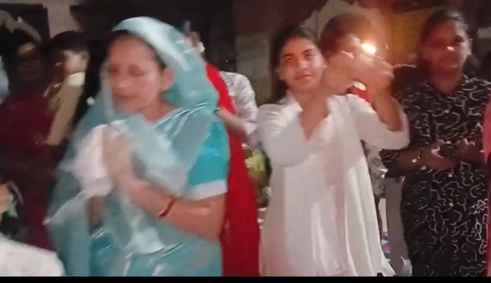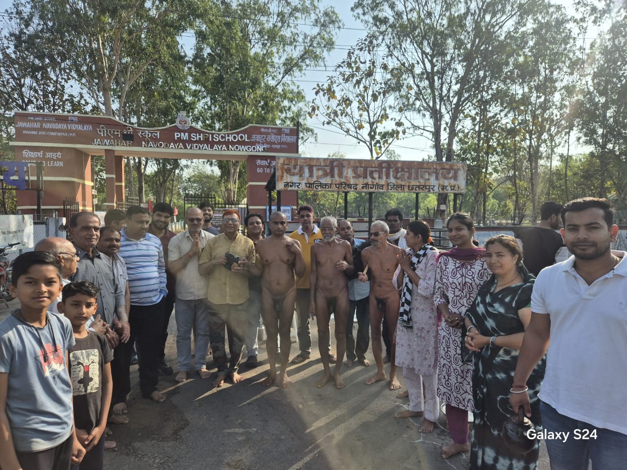 नौगांव मध्य प्रदेश 8 अप्रैल बुधवार 2026 को मंगल विहार के दौरान जवाहर नवोदय विद्यालय के पढ़ने वाले छात्र छात्राओं एवं पूरा स्टाफ ने मुनि संघ की जय जयकारों से अगवानी की