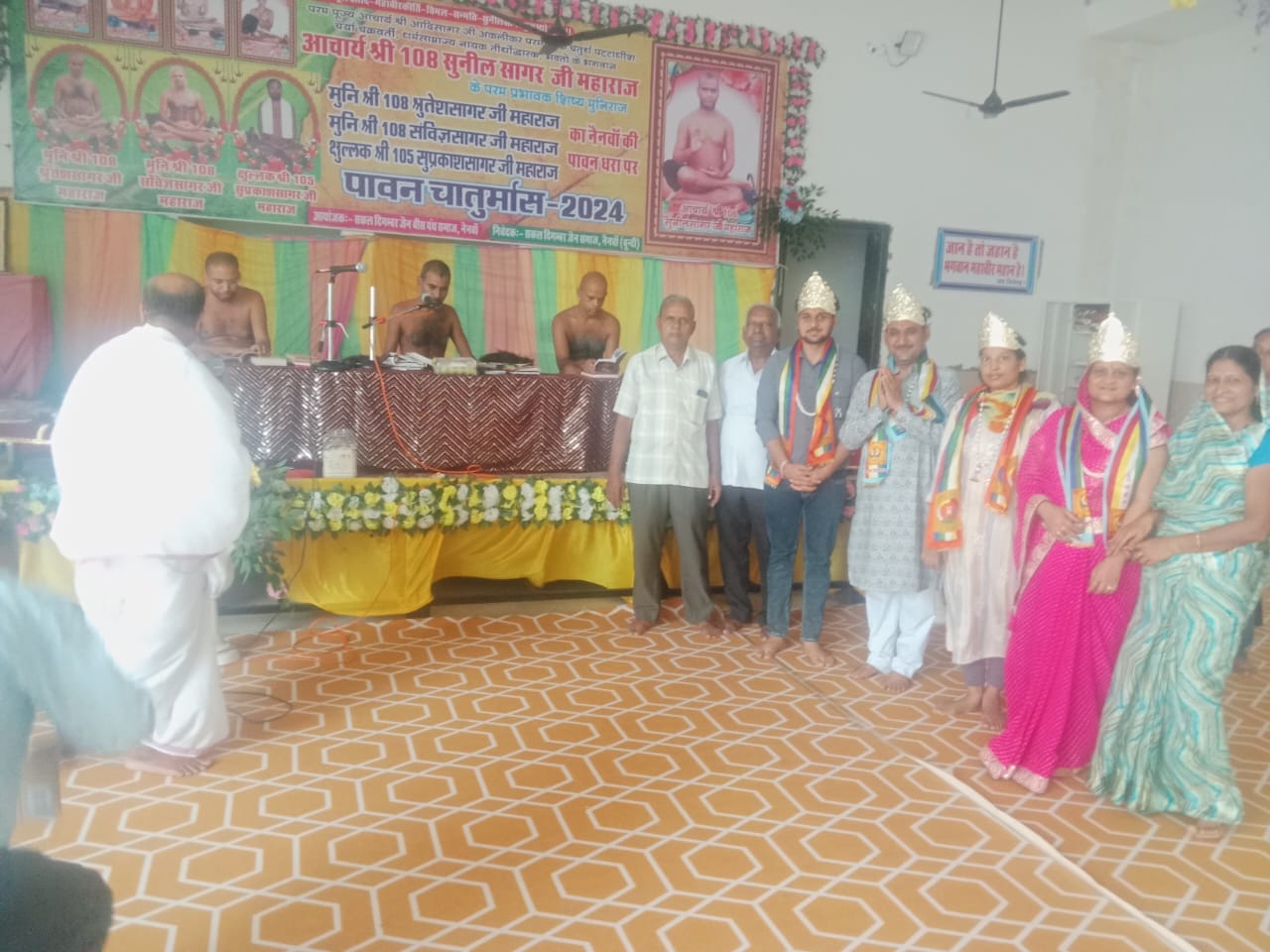 नैनवा 1 अगस्त गुरुवार 2024 शांति वीर धर्म स्थल पर जैनचार्य श्रुतेश सागर महाराज ने प्रातः8 30 पर