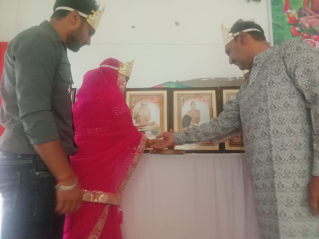 शैलेंद्र कुमार जैन मारवाड़ा परिवार द्वारा पाद पक्षालन चित्र अनावरण किया श्रीमती सीमा जैन मारवाड़ा मंगलाचरण की प्रस्तुति दी