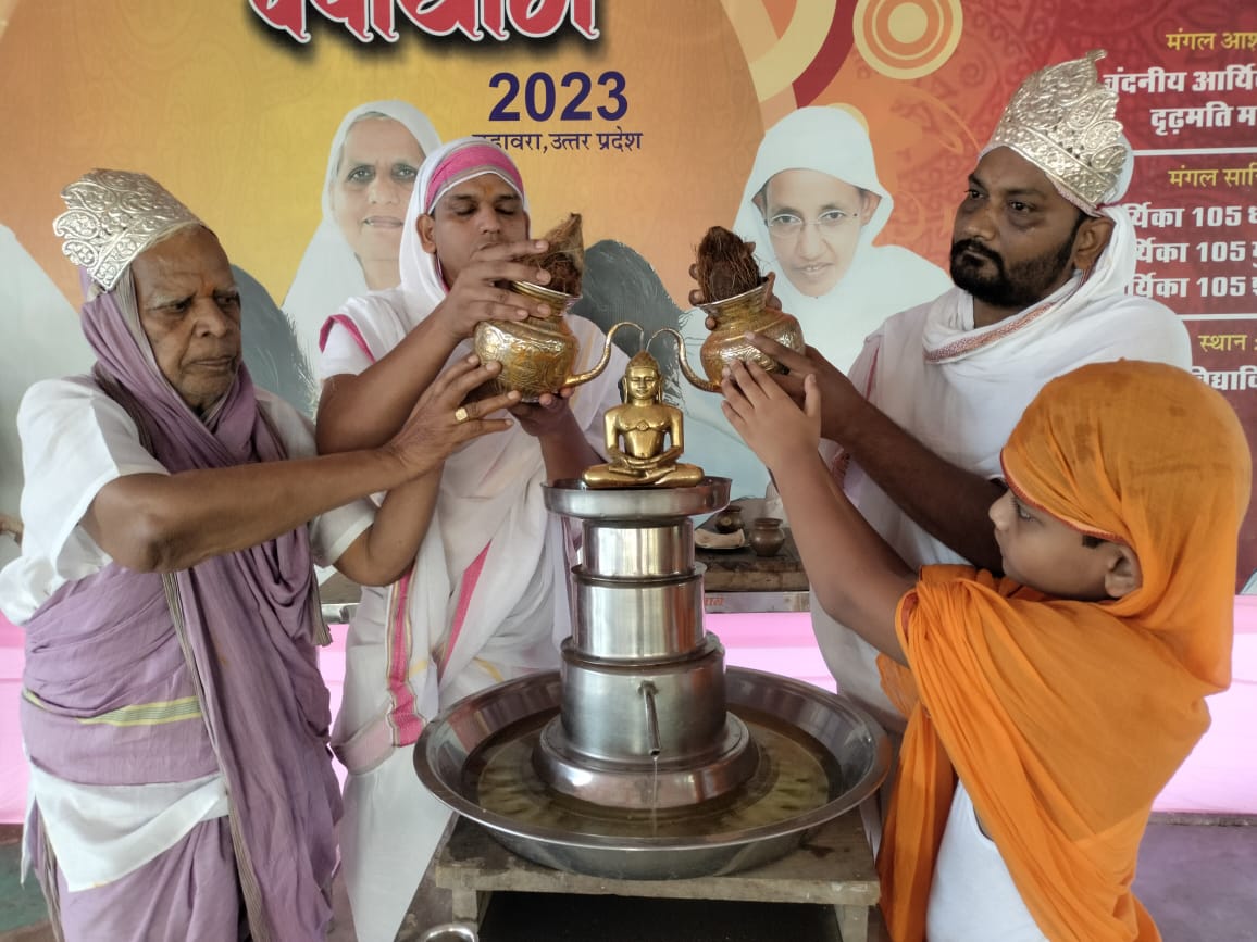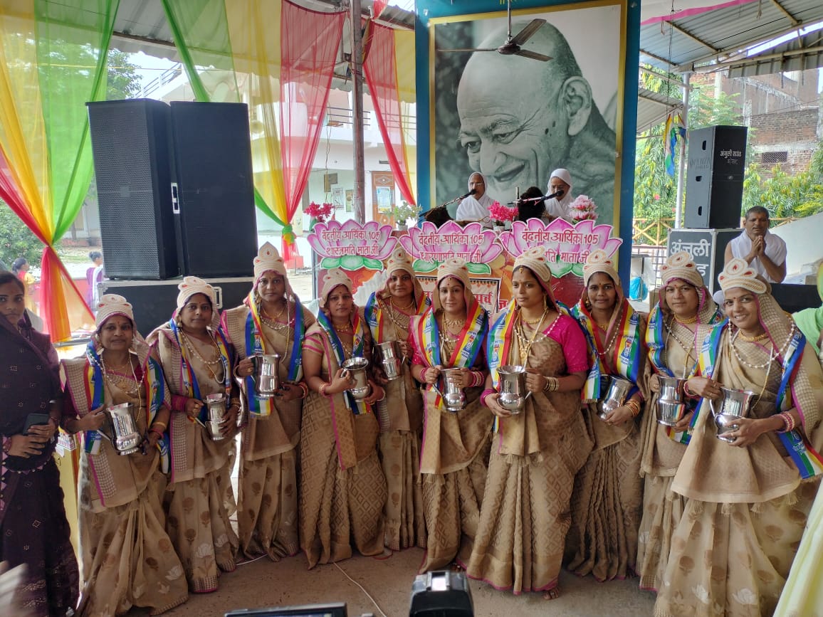 राहुल जैन सेठी परिवार,सवाई सिंघई श्रेयांस कुमार,डिम्पल जैन ने प्राप्त किया।तत्पश्चात आर्यिका श्री के प्रवचन के पूर्व अखिल भारतीय स्वस्ति महिला मंडल की दस बहिनों दर्शना जैन,प्रतिभा,अंजली,