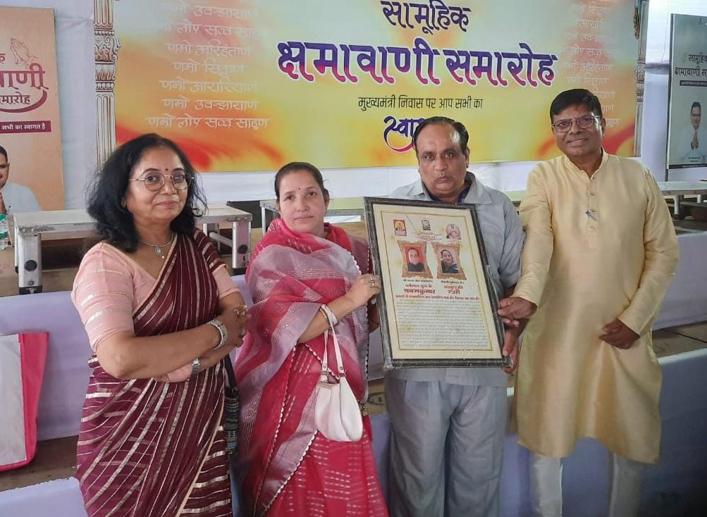 राजस्थान की राजधानी जयपुर के इतिहास में पहली बार मुख्य मंत्री आवास पर सामूहिक क्षमा वाणी का आयोजन परम पूज्य आचार्य 108 शशांक सागर जी महाराज मुनि श्री पावन सागर जी महाराज ससंघ एक साथ दिगंबर और श्वेतांबर दस से अधिक संतो के मंगलमय सानिध्य में आयोजित किया गया। माननीय मुख्यमंत्री के साथ राजस्थान के आधे से अधिक मंत्री गण भी कार्यक्रम में उपस्थित रहे और संतों का भाव भीना अभिनंदन और स्वागत किया जैन समाज के प्रबुद्धगण इस अवसर पर उपस्थित रहे।