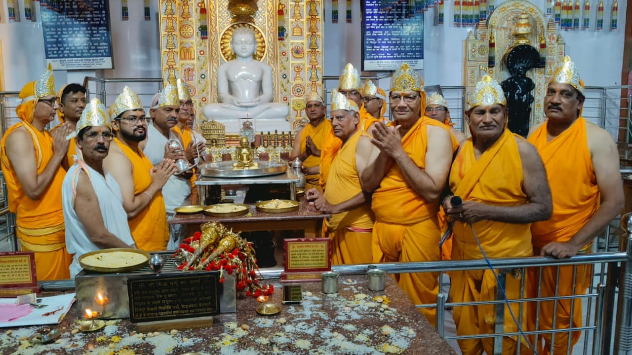 जयपुर के श्री आदिनाथ दिगम्बर जैन मंदिर एस.एफ.एस में जैन धर्म के तीसरे तीर्थंकर संभव नाथ भगवान का मनाया गर्भ कल्याणक महोत्सव साथ ही अष्टानिका महा पर्व में सिद्ध चक्र महामंडल विधान का हुआ भव्य आयोजन