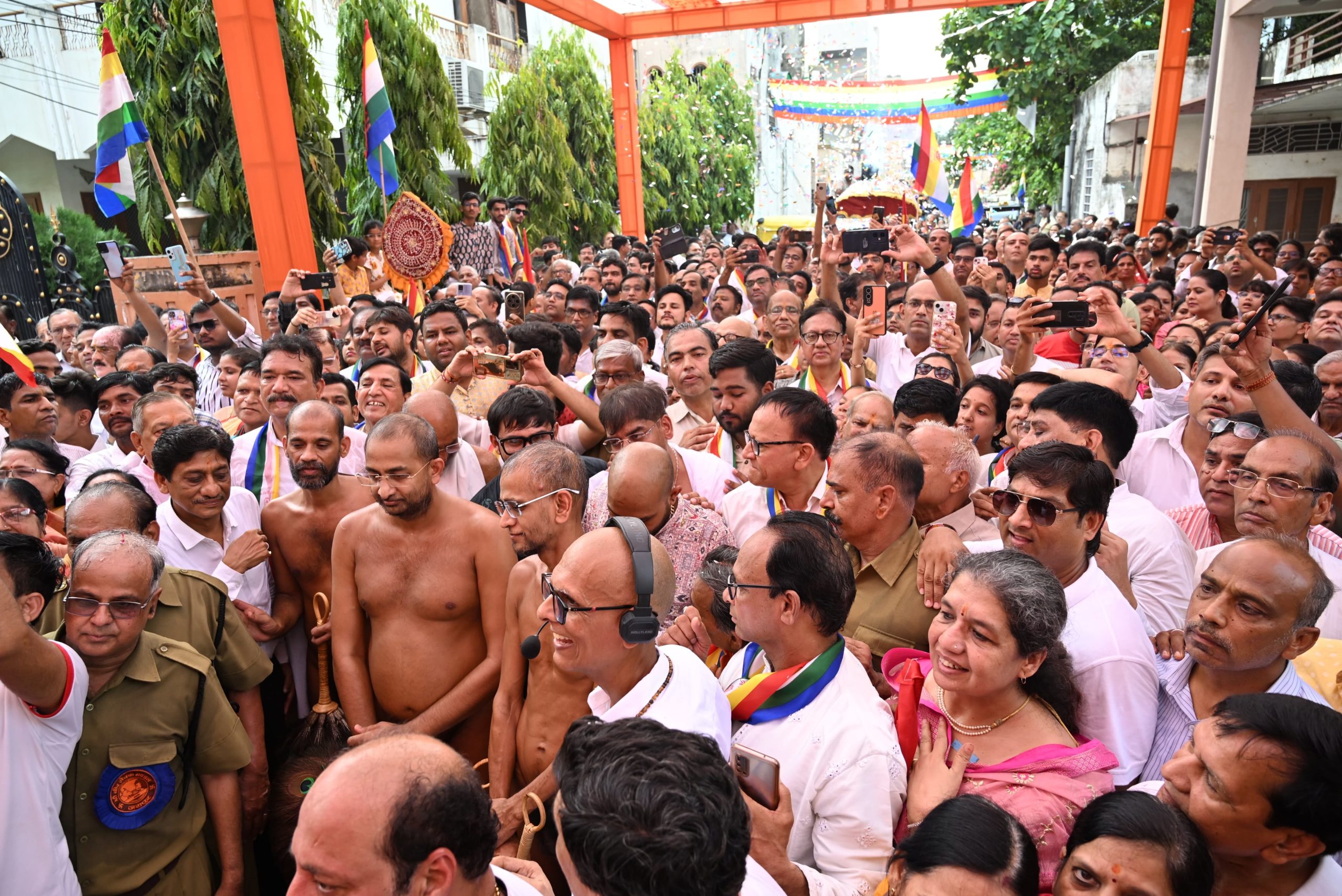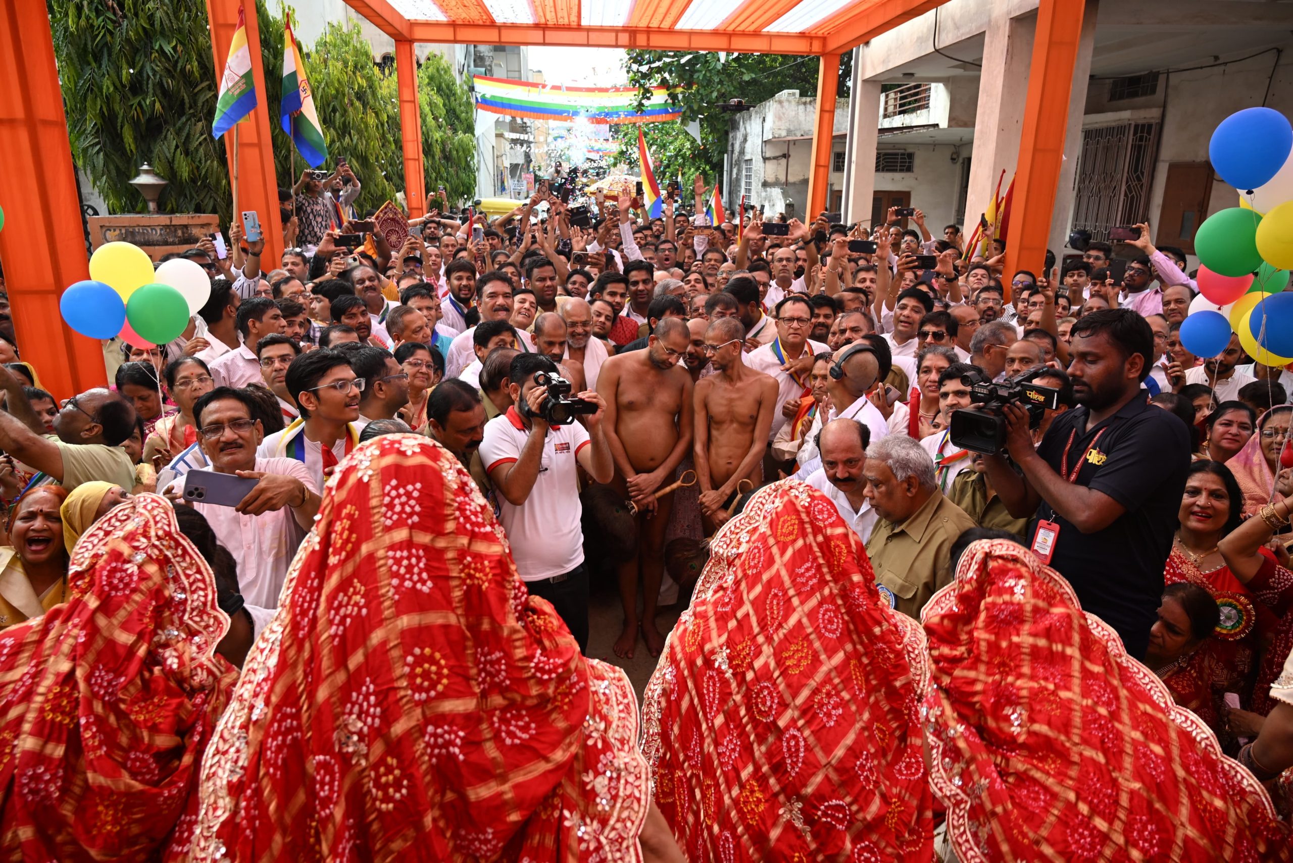 कीर्ति नगर जैन मंदिर पहुचने पर महिला मण्डल की सदस्याओं ने सिर पर मंगल कलश लेकर अगवानी करने के बाद प्रबंधकारिणी समिति ने पाद पक्षालन एवं महिला मंडल ने मंगल आरती की। जुलूस में महिला मण्डल की सदस्याऐं एवं श्रद्धालु बडी संख्या में नाचते गाते शामिल हुए। श्री वीर सेवक मण्डल जयपुर के सदस्यों ने जुलूस व्यवस्था संभाली