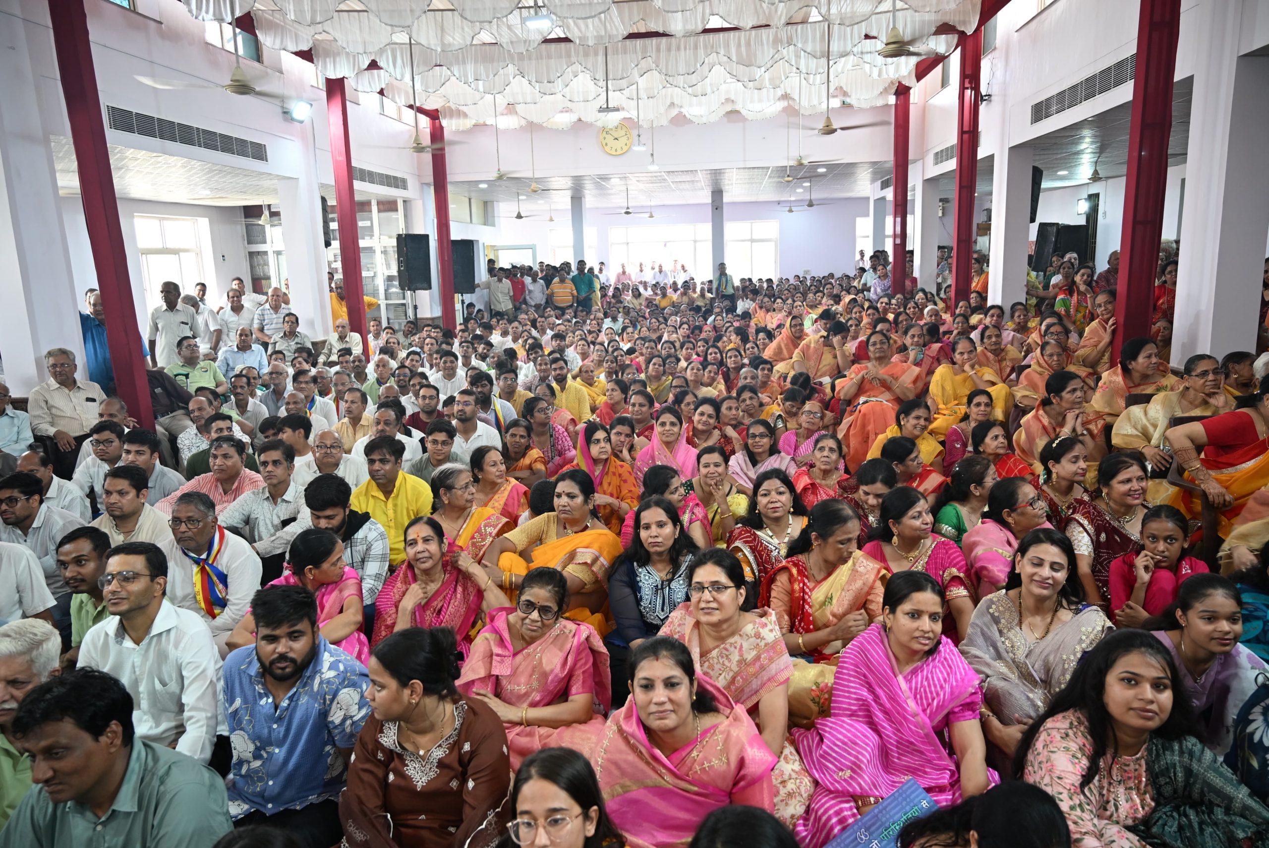 नन्हीं बालिकाओं ने मंगल मंगल घड़ी….. मंगलाचरण प्रस्तुत किया कार्यक्रम में बांसवाडा की गायिका दिशी जैन ने भक्ति रस बरसाकर उपस्थित श्रद्धालुओं को झूमने को मजबूर कर दिया,इस मौके पर 2 वर्षो में मुनि श्री ससंघ का 2000 किलोमीटर से अधिक का विहार करवाने वाले संघपति भीलवाड़ा निवासी विकास सेठी सहित